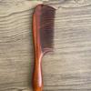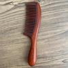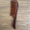 Red sandalwood heart-shaped wooden comb with handle fine teeth (22cm)