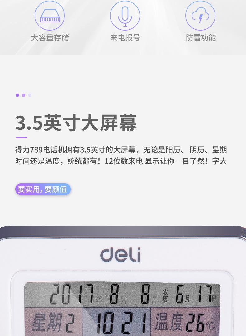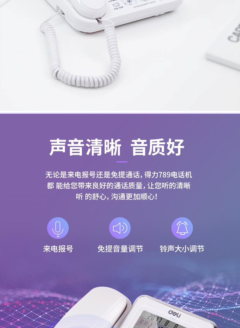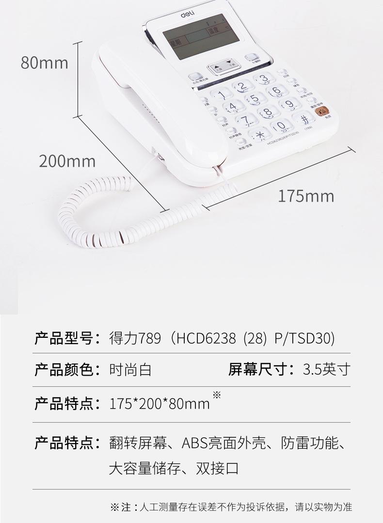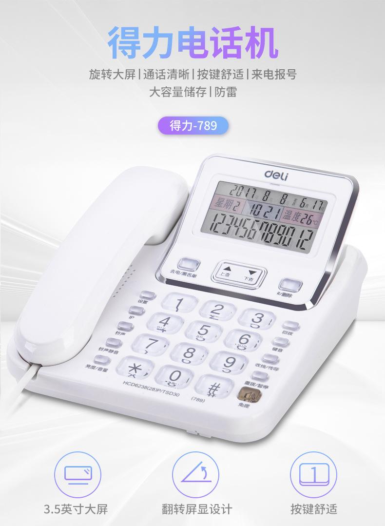 Teléfono Deli 789 Teléfono fijo de lujo con luz y pantalla de llamada, con cable, multifunción, para oficina