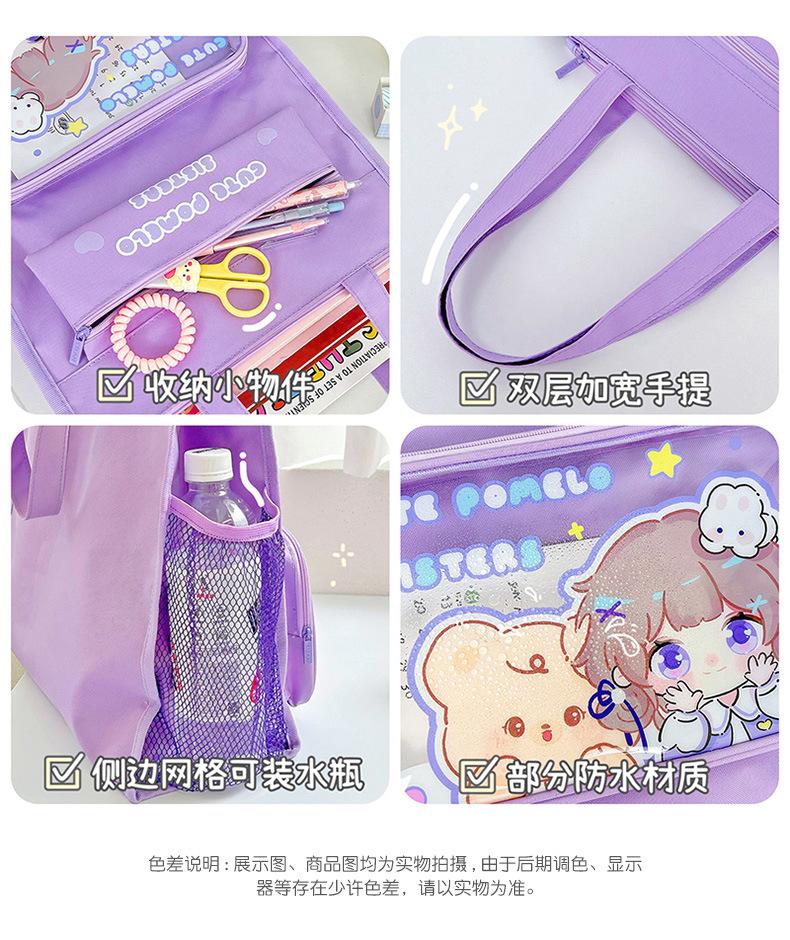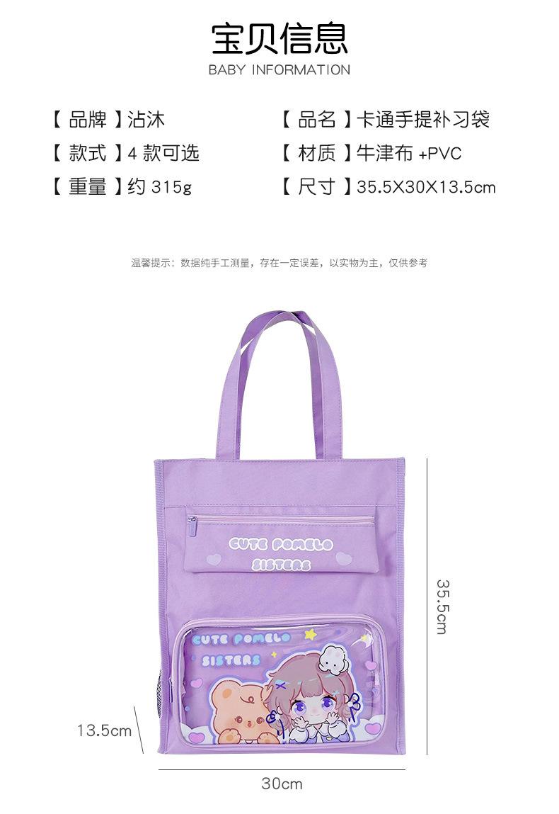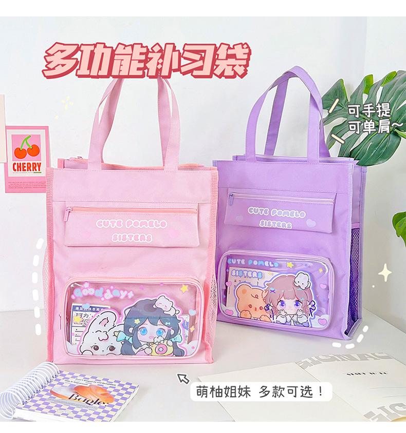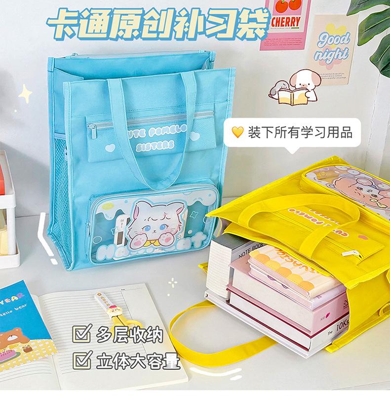 Bolsa de lona con dibujos animados para tutoría, bolsa para llevar libros, archivos, tareas de arte, materiales, bolsa de almacenamiento de libros para niña