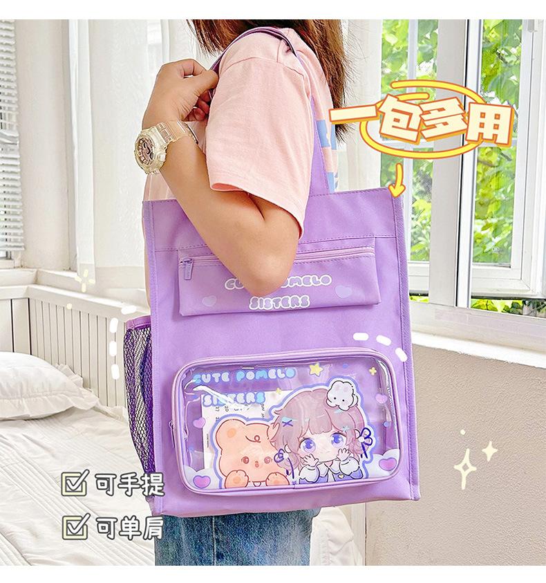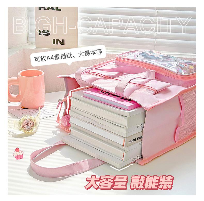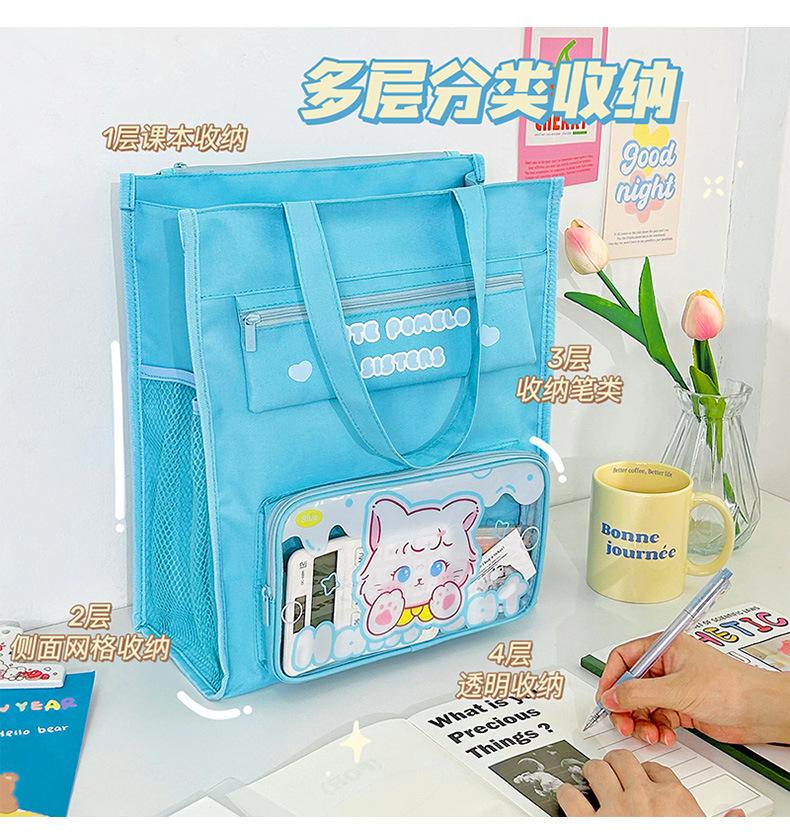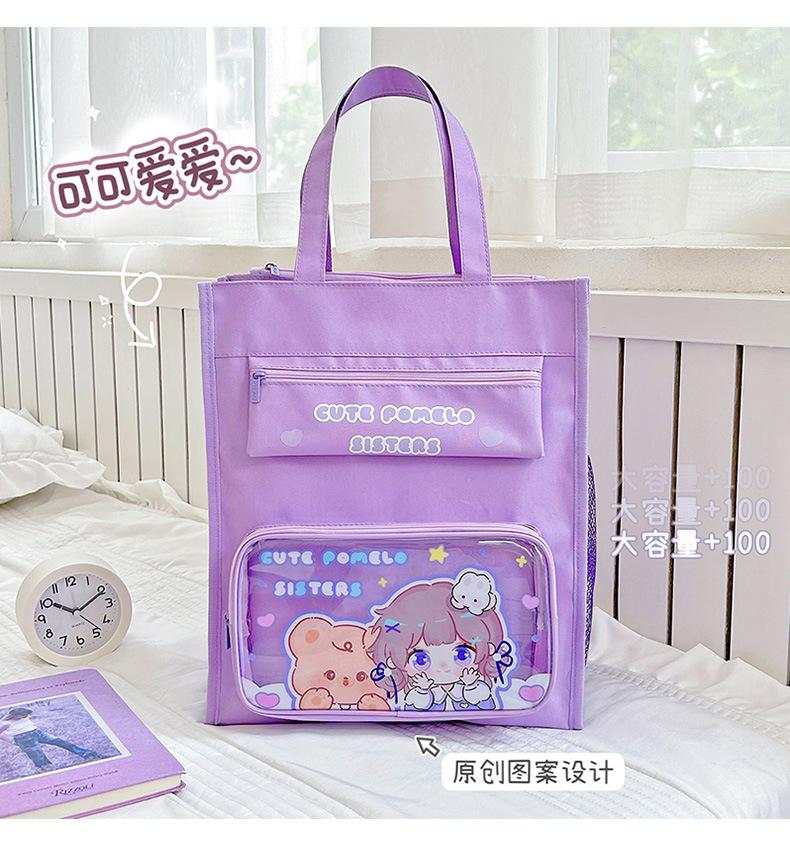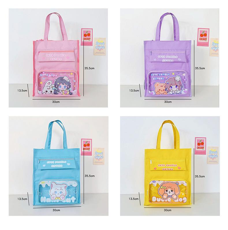 Bolsa de lona con dibujos animados para tutoría, bolsa para llevar libros, archivos, tareas de arte, materiales, bolsa de almacenamiento de libros para niña