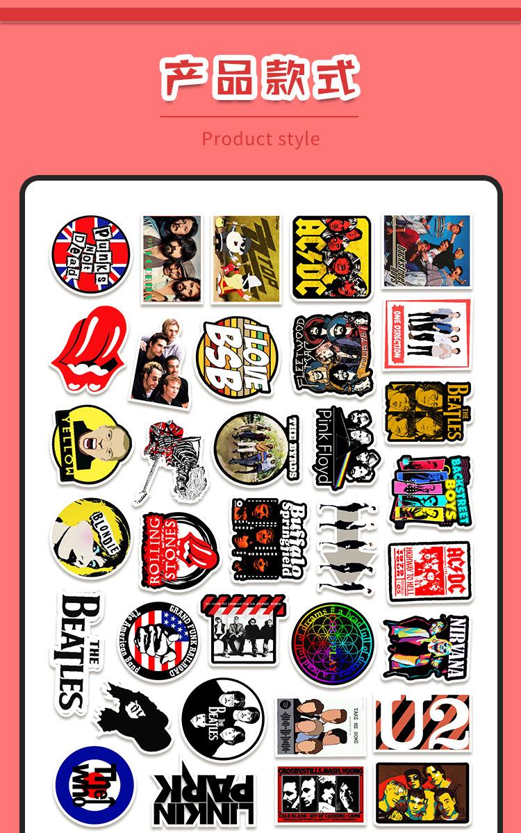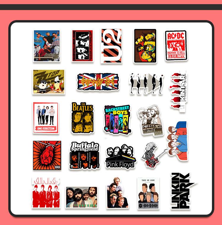 50 Piezas de Stickers Graffiti de Música Nostálgica Guitarra Refrigerador Patineta Motocicleta Stickers Impermeables Venta al por Mayor Creativo