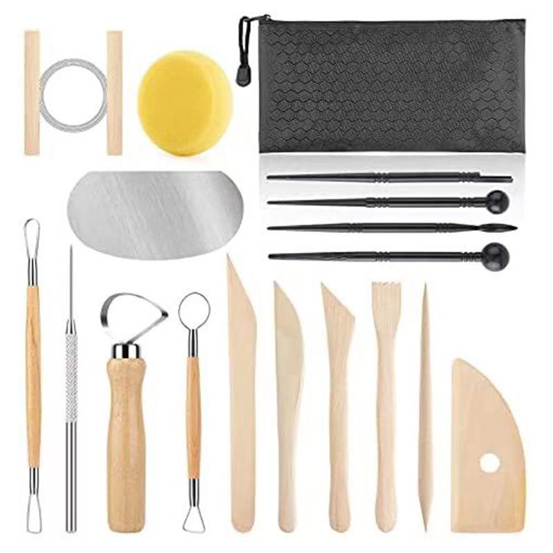Juego de 18 herramientas para tallar arcilla transfronterizas, con detalles de arcilla blanda, aguja, madera, cuchillo para arcilla, cerámica, disponible en stock.