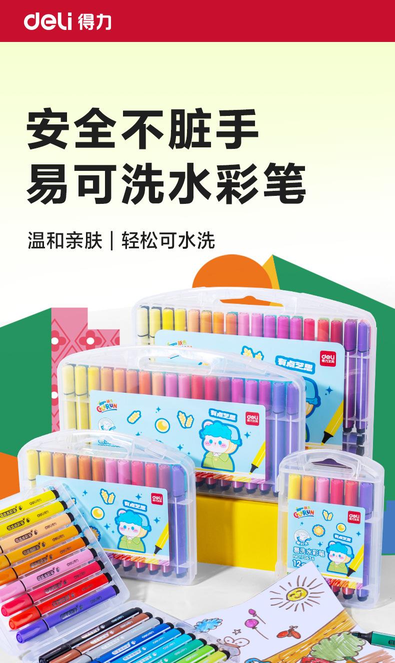 Bolígrafo de acuarela Deli con sello para niños y estudiantes, lavable, para pintar grafitis, arte.