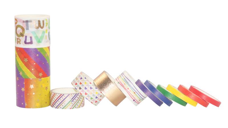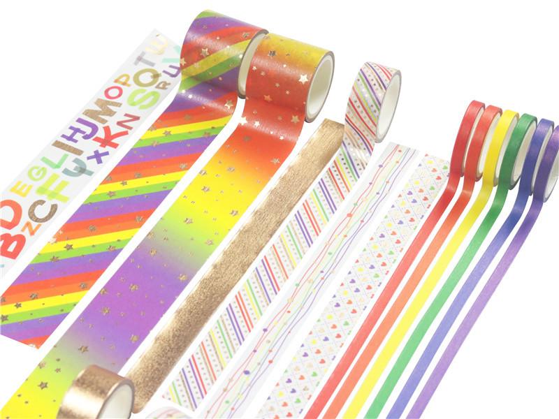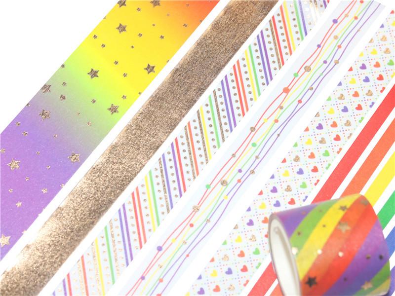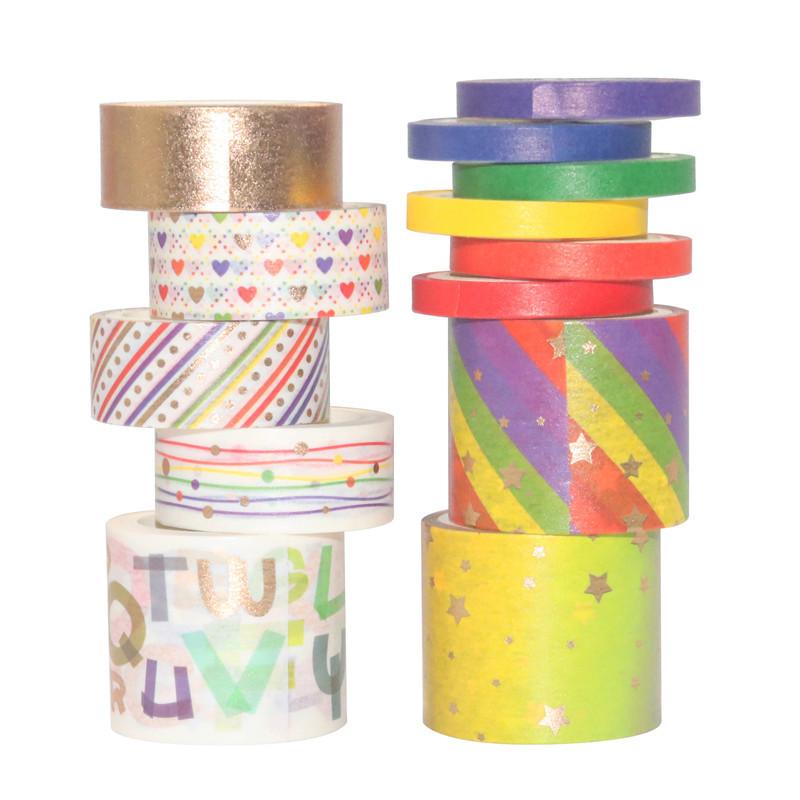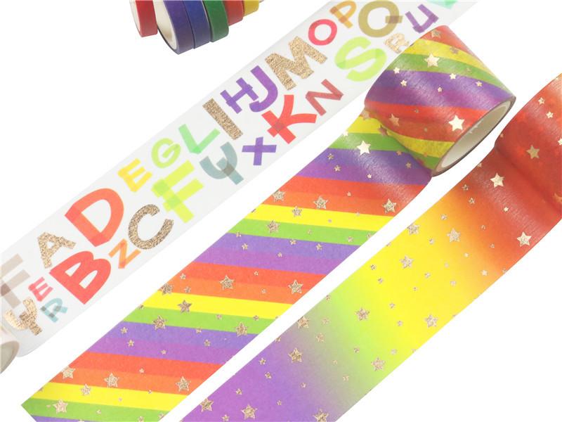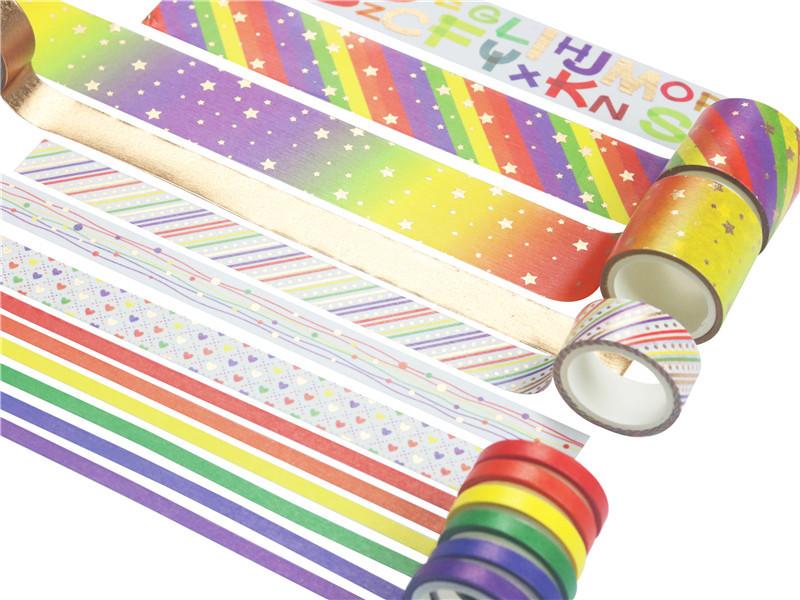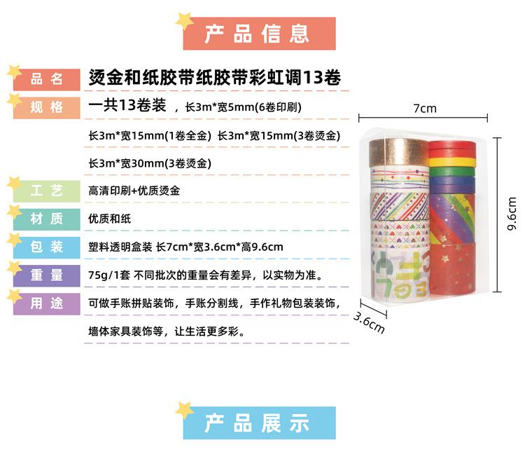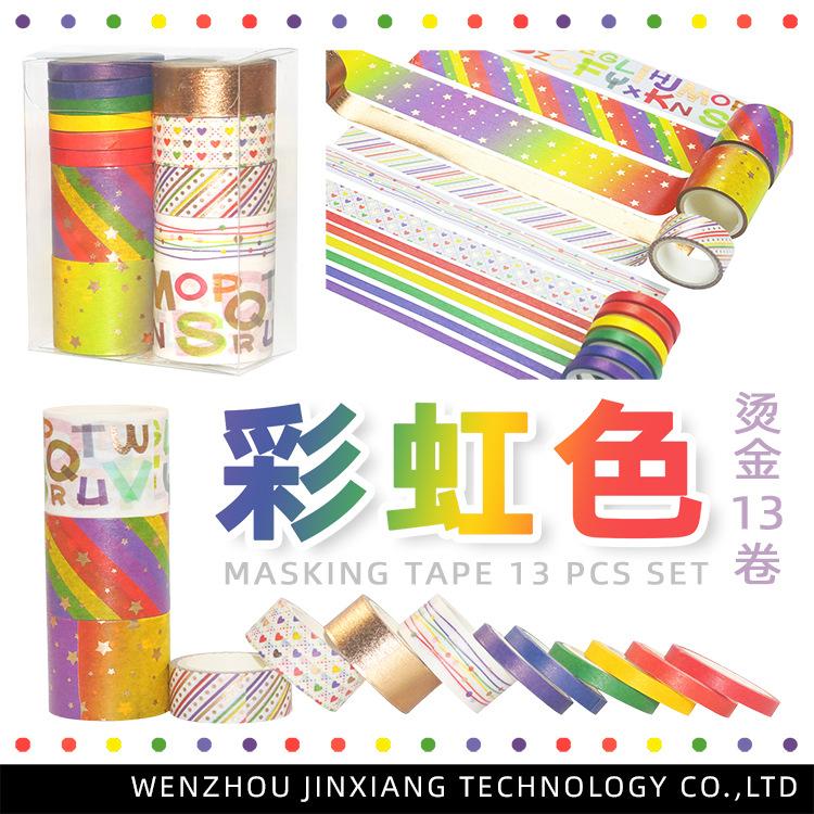 Suministro de Comercio Exterior Cinta Washi Hot Stamping Tono Arcoíris 13 Rollos Cinta Decorativa para Planificador DIY Pegatinas Transfronterizas Planificador