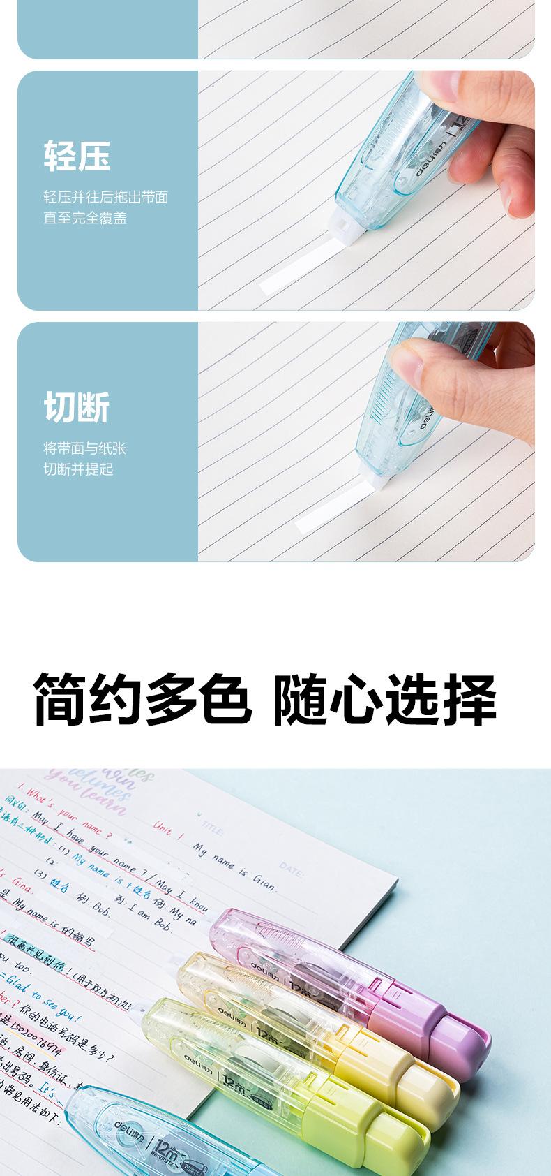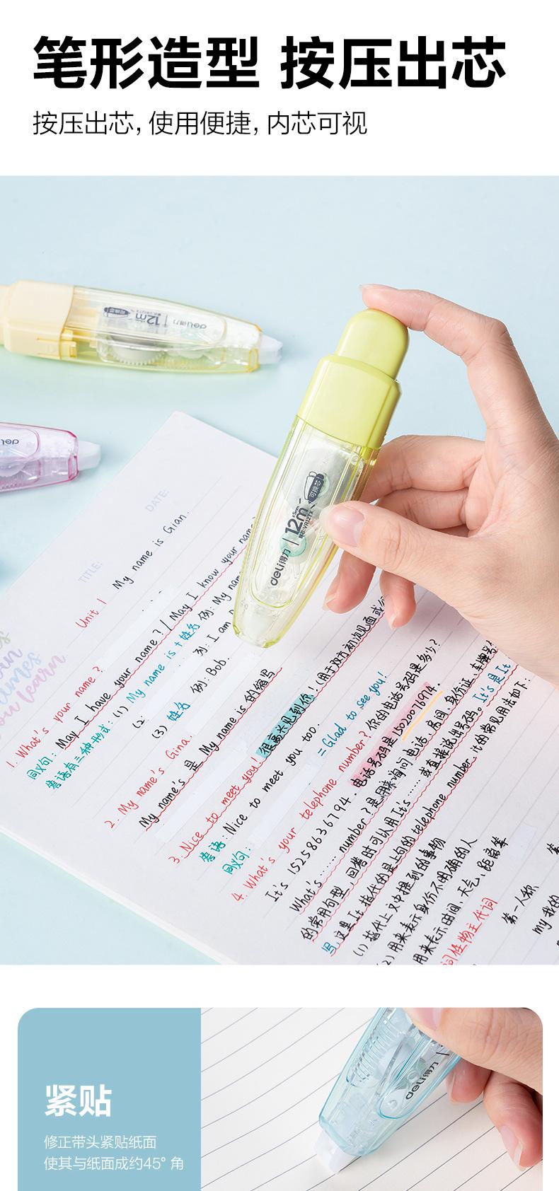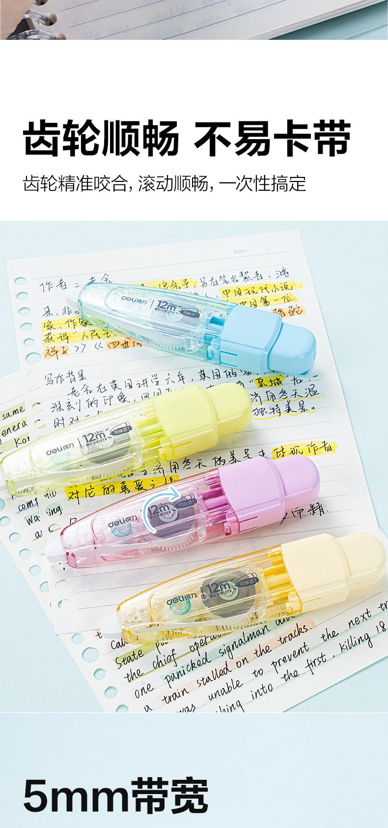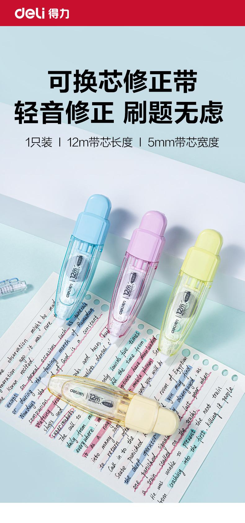 Cinta correctora con forma de bolígrafo Deli VR12, cinta correctora multicolor, limitada para estudiantes de primaria, con núcleo reemplazable.
