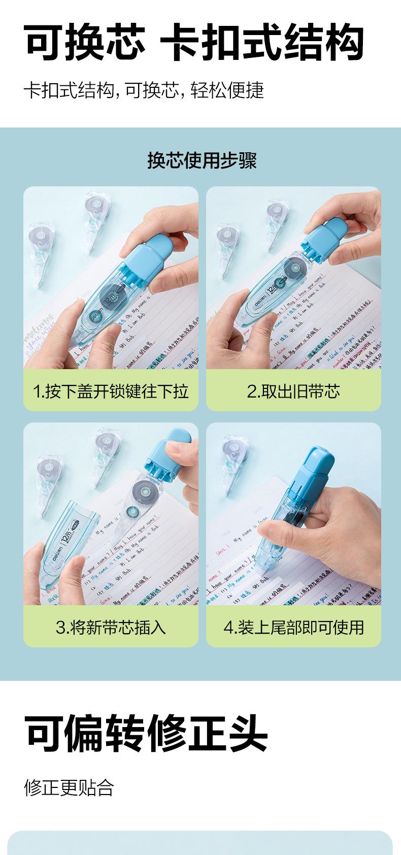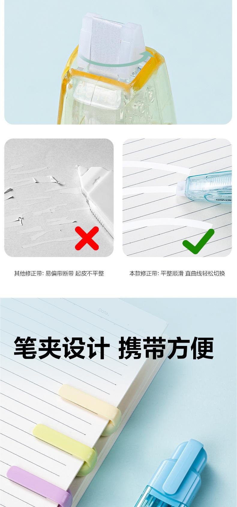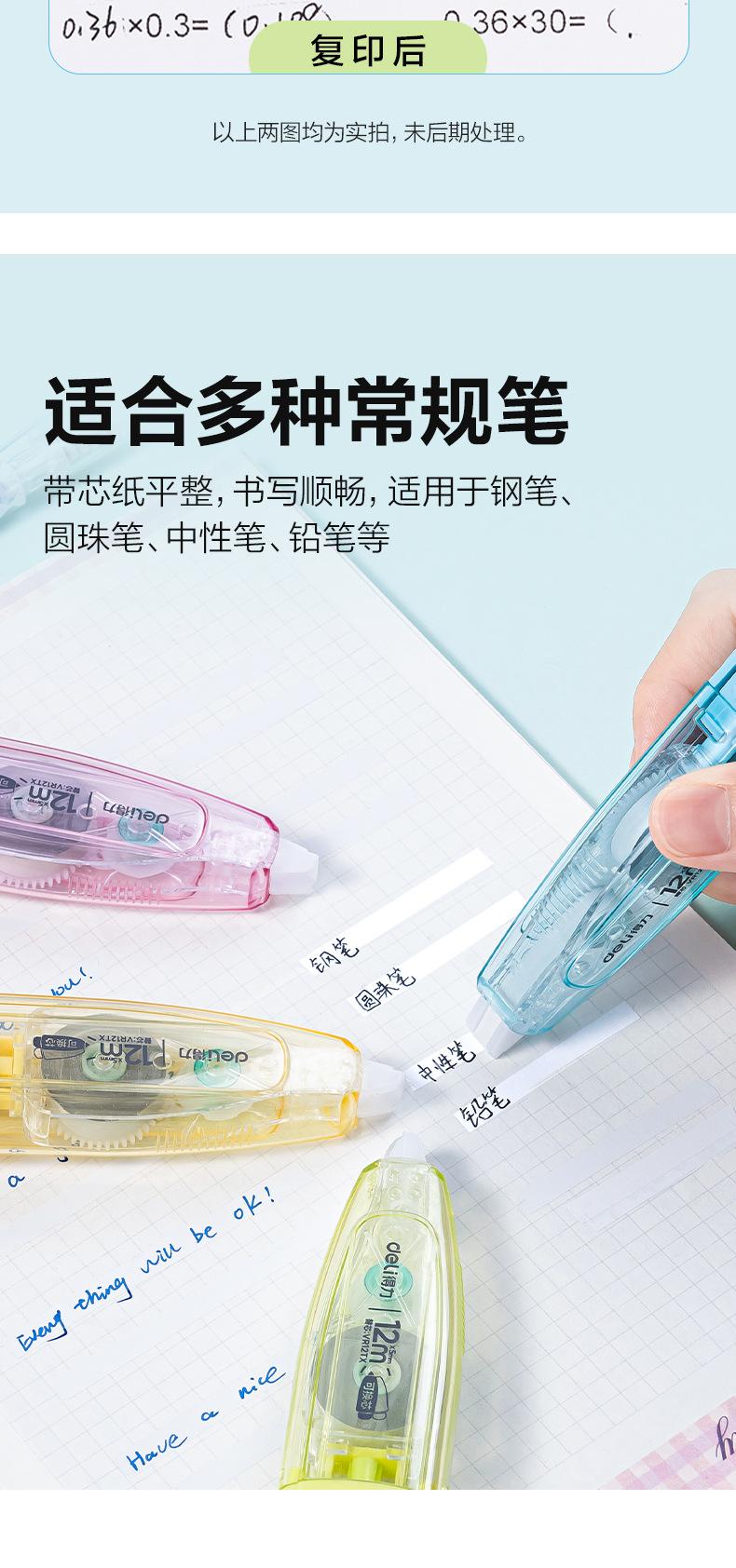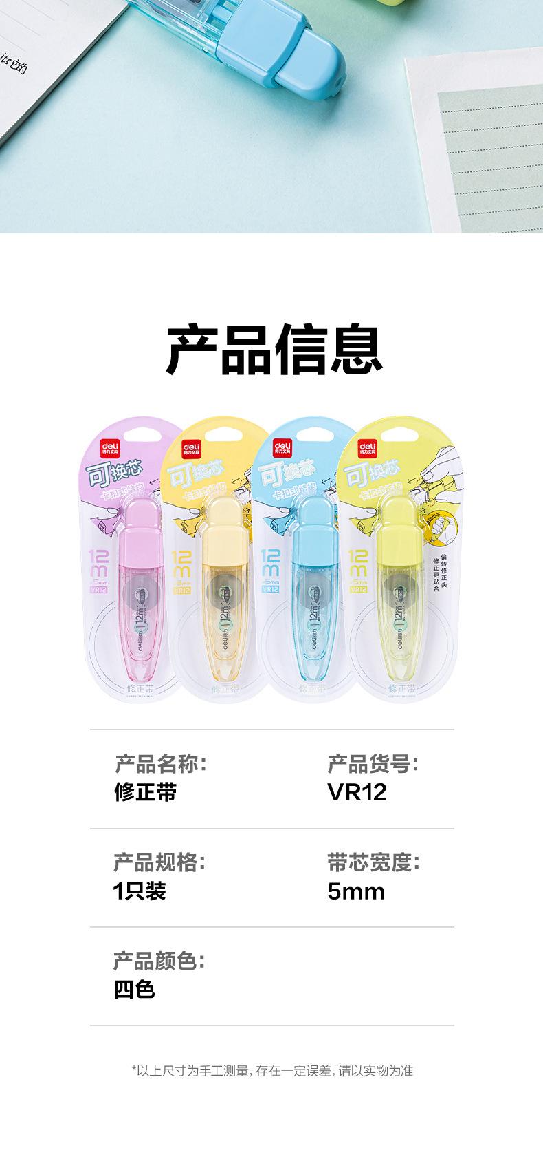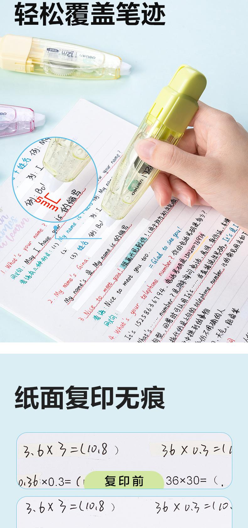 Cinta correctora con forma de bolígrafo Deli VR12, cinta correctora multicolor, limitada para estudiantes de primaria, con núcleo reemplazable.