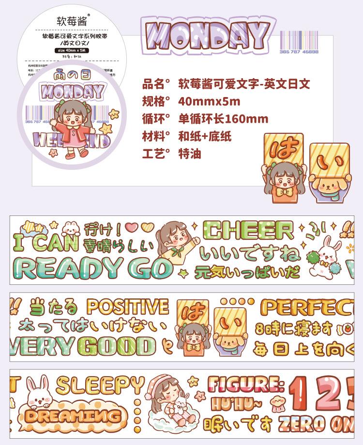 Nombre del bebé | Mermelada de Bayas Suaves Serie de Texto Lindo Cinta Adhesiva Especial de Aceite | Material | papel japonés | |