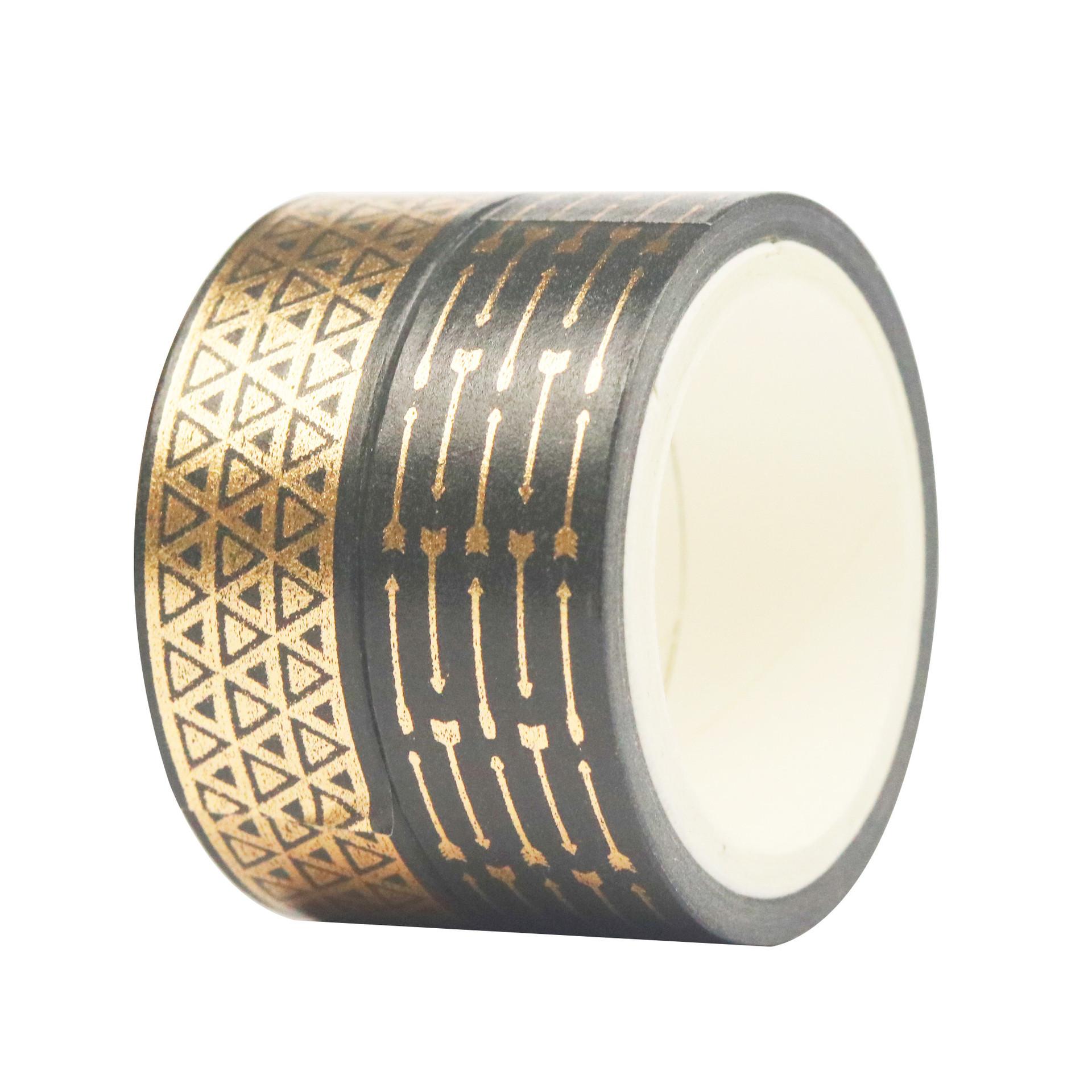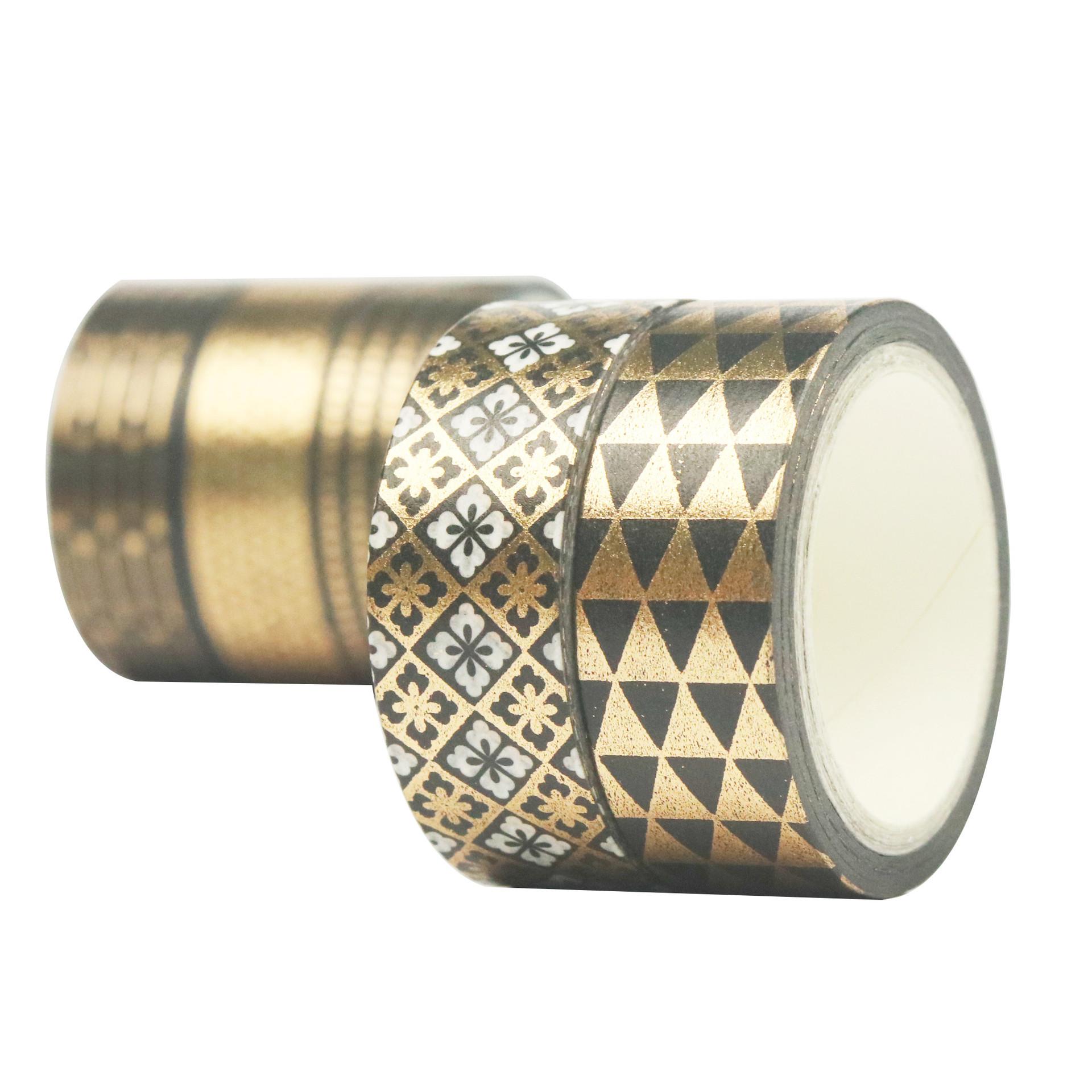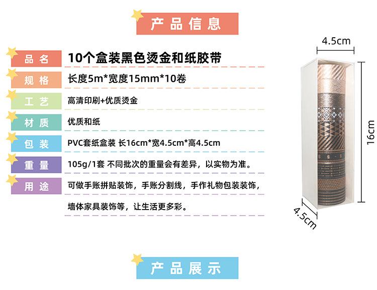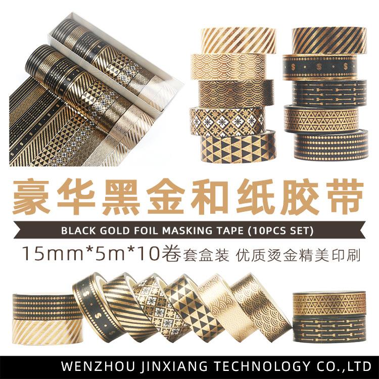 Suministro de Comercio Exterior: 10 Paquetes de Cinta Washi de Lámina de Oro Negro, Cinta Decorativa DIY Negra y Dorada para Diario, Pegatinas Transfronterizas