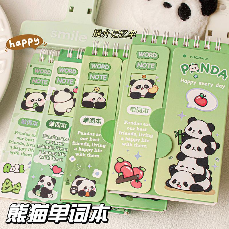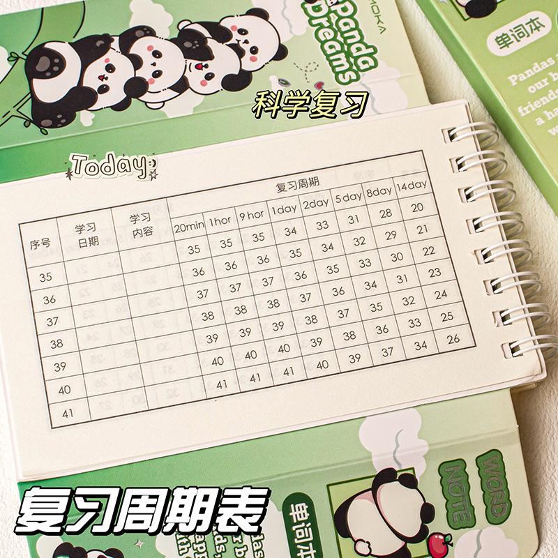 Libro de palabras de panda, libro de dibujos animados en inglés, diario portátil que se puede cubrir y llevar, cuaderno de bolsillo de tamaño pequeño, libro pequeño