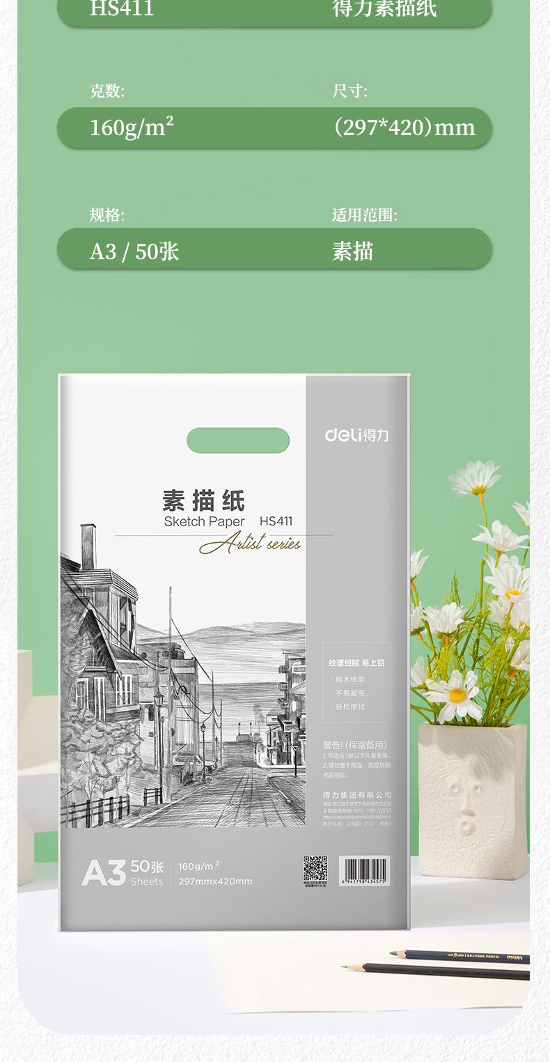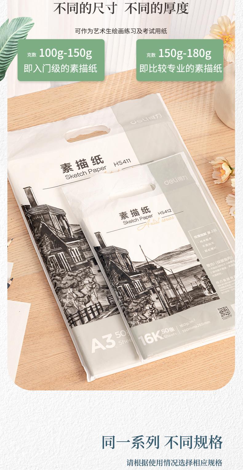 Deli 73939_Sketch Paper 140g-A4 (White)(50 sheets/bag), Deli 73940_Sketch Paper 140g-8K (White)(50 sheets/pack...