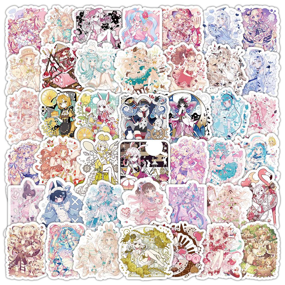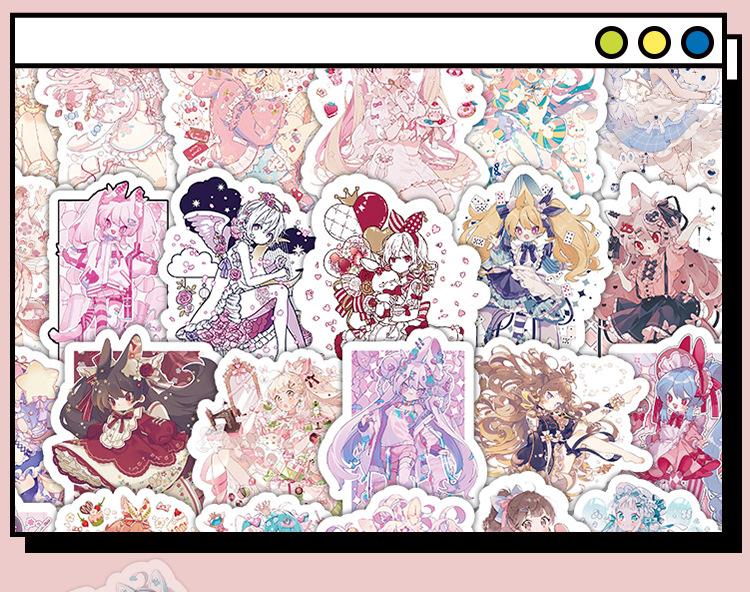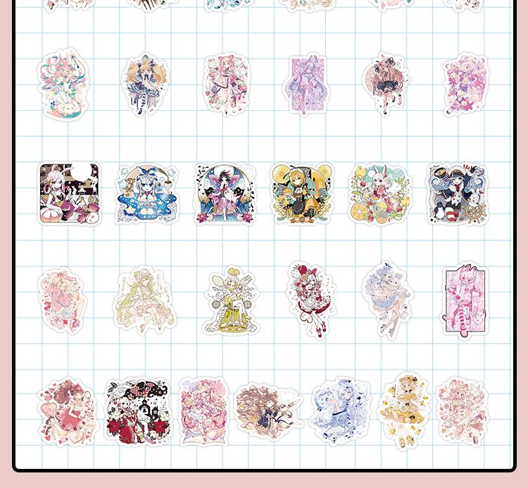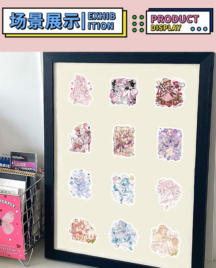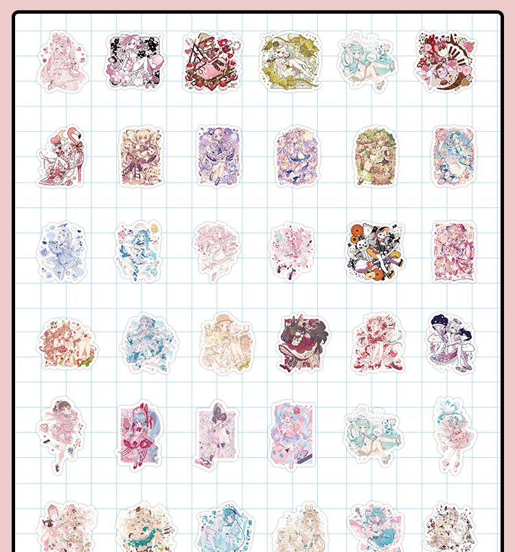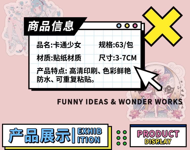 63 pegatinas de dibujos animados de chicas bidimensionales, lindas pegatinas de diario para chicas, decoración de carcasas de teléfonos móviles y portátiles.