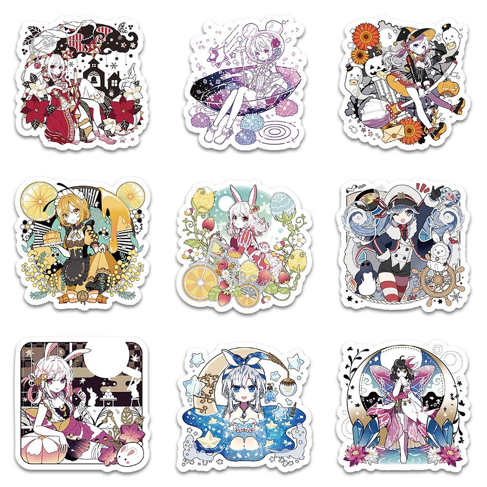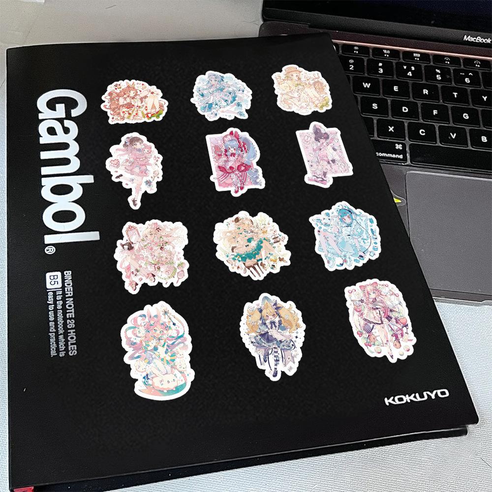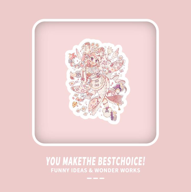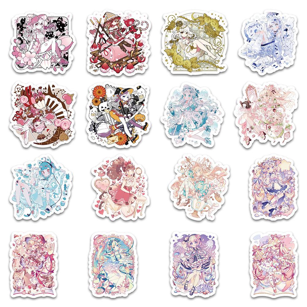 63 pegatinas de dibujos animados de chicas bidimensionales, lindas pegatinas de diario para chicas, decoración de carcasas de teléfonos móviles y portátiles.