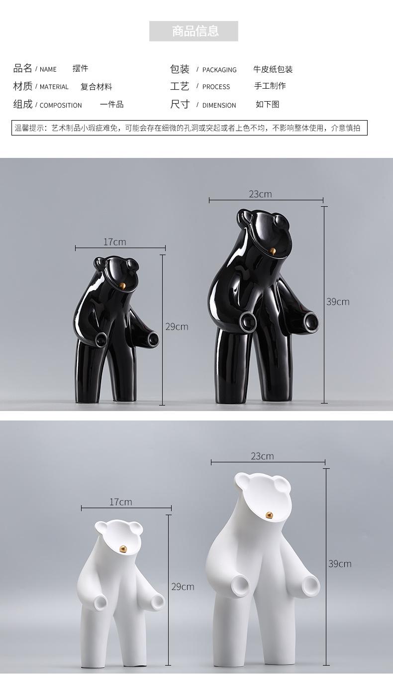 Los mejores adornos de resina de oso sin rostro bicolor en blanco y negro del oeste, estilo ins, para el porche de alta gama del hogar.