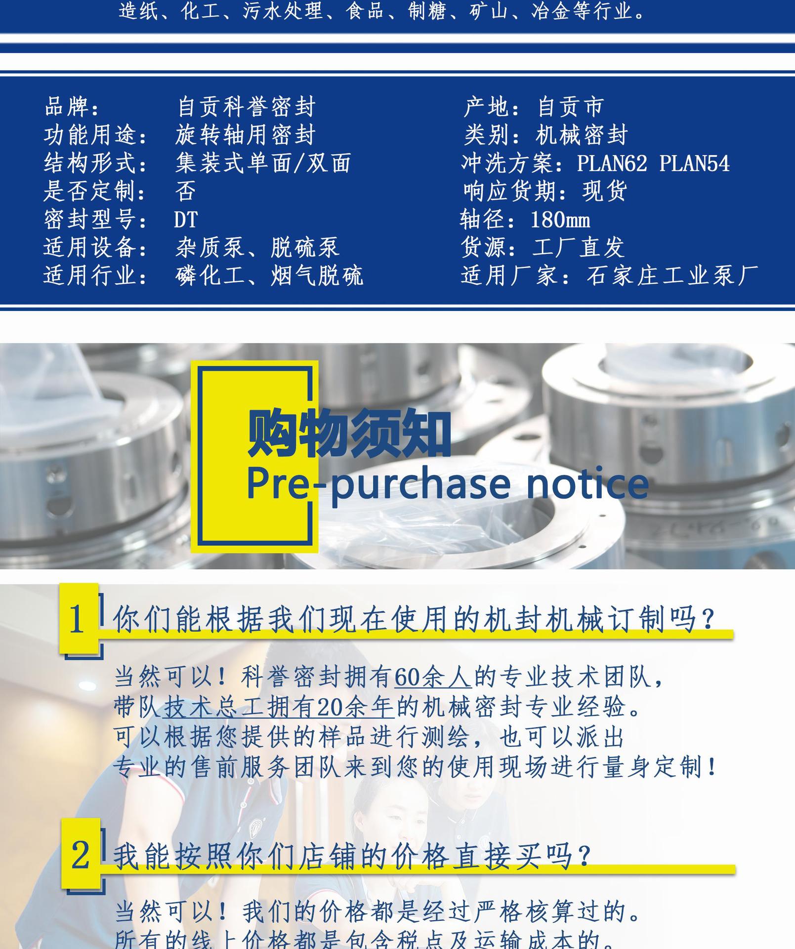 550DT-A 70 550 DT-A 75 500 DT-A 70 600 DT-A82 Sello Mecánico Fabricante de Sellos Keyu