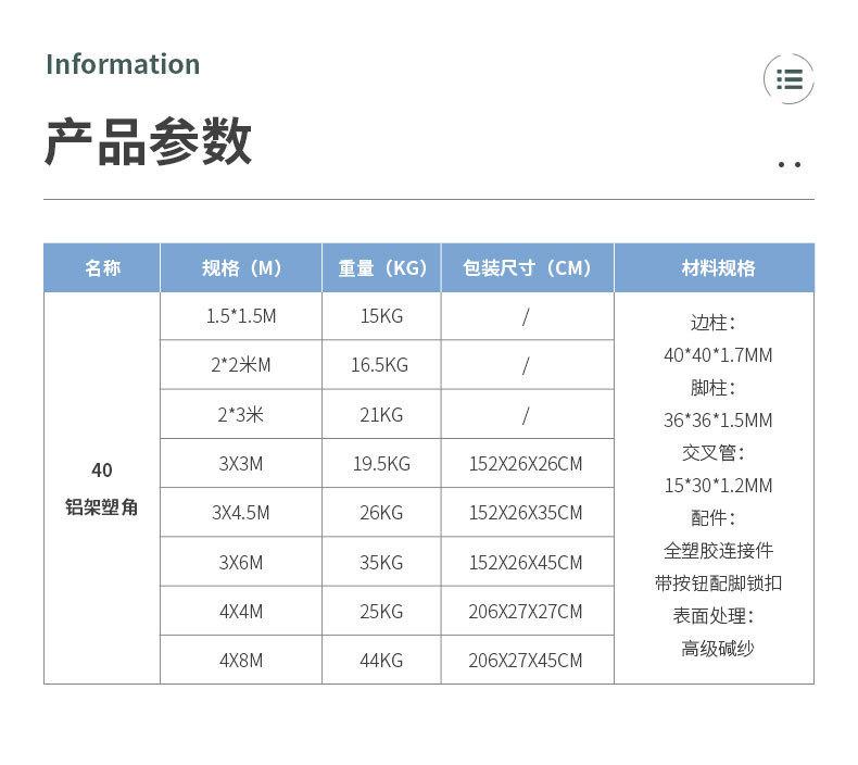 40 square tube aluminum alloy bracket (excluding cloth top) 3*6 meters