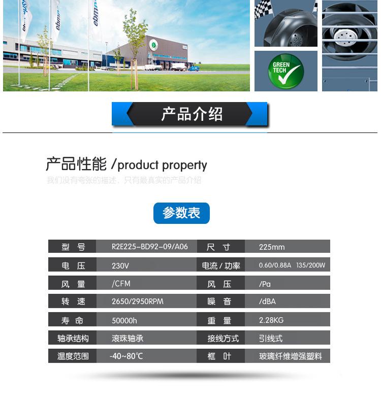 Compra Ventilador centrífugo de refrigeración para purificación ebmpapst R2E225-BD92-09/A 06 importado 230 V135/200W al por mayor en Joom.pro