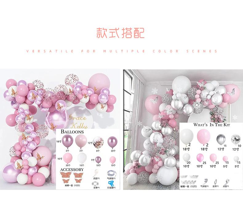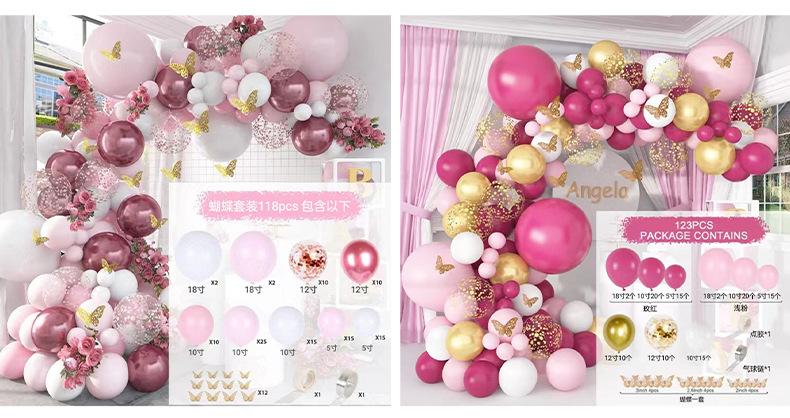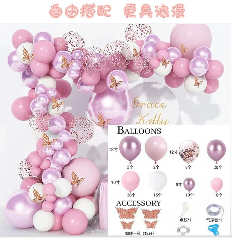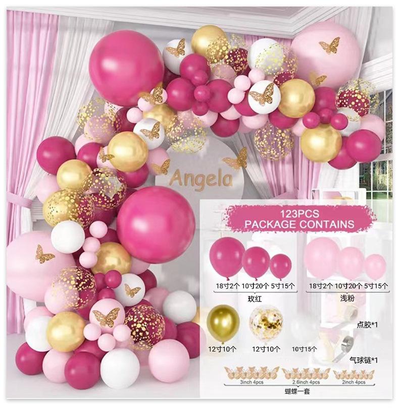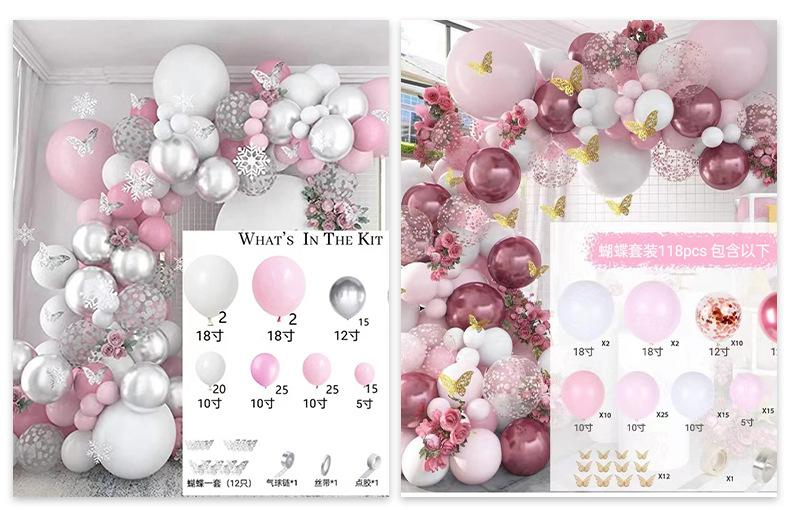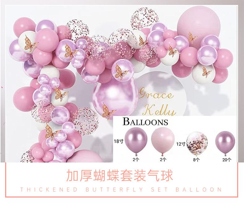 Venta caliente transfronteriza, decoración de mariposa rosa de metal, globo temático 3D, cadena, traje, fiesta de cumpleaños, boda, globo de látex