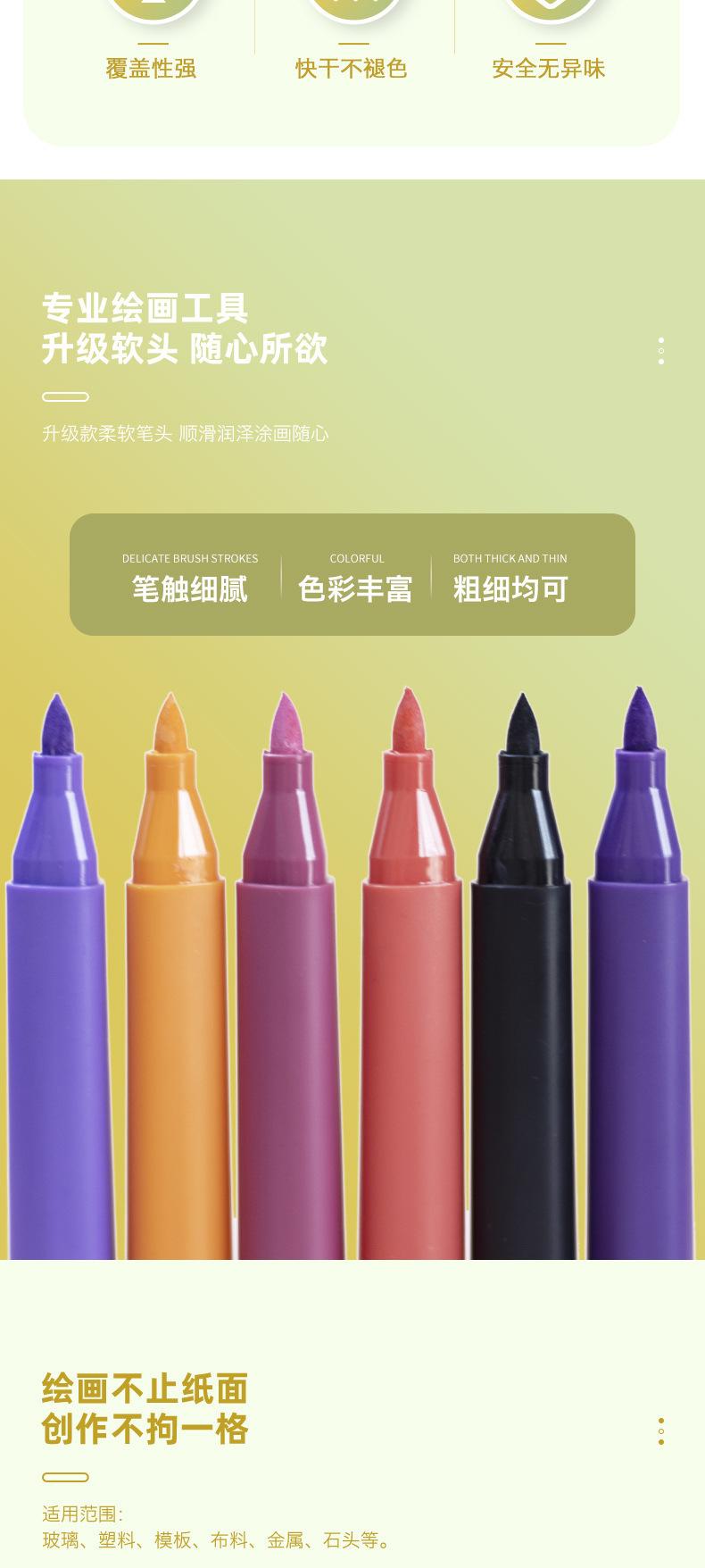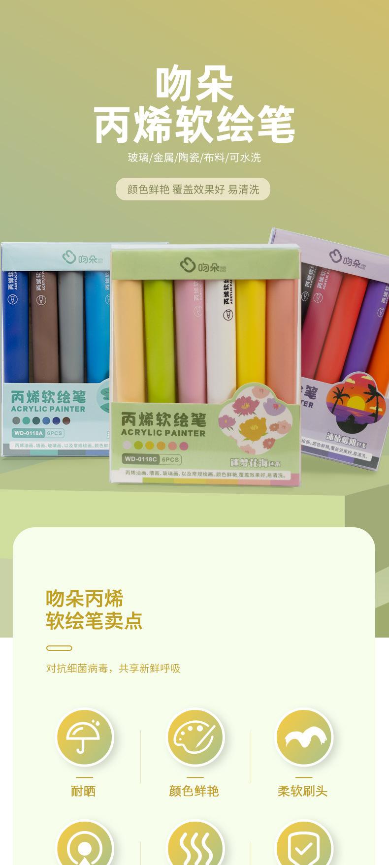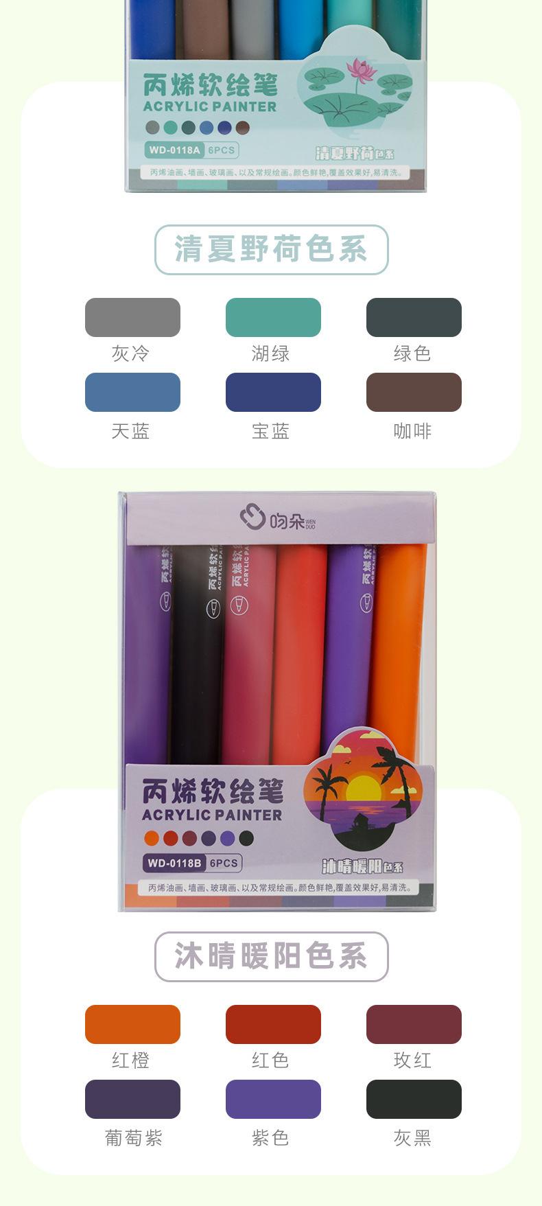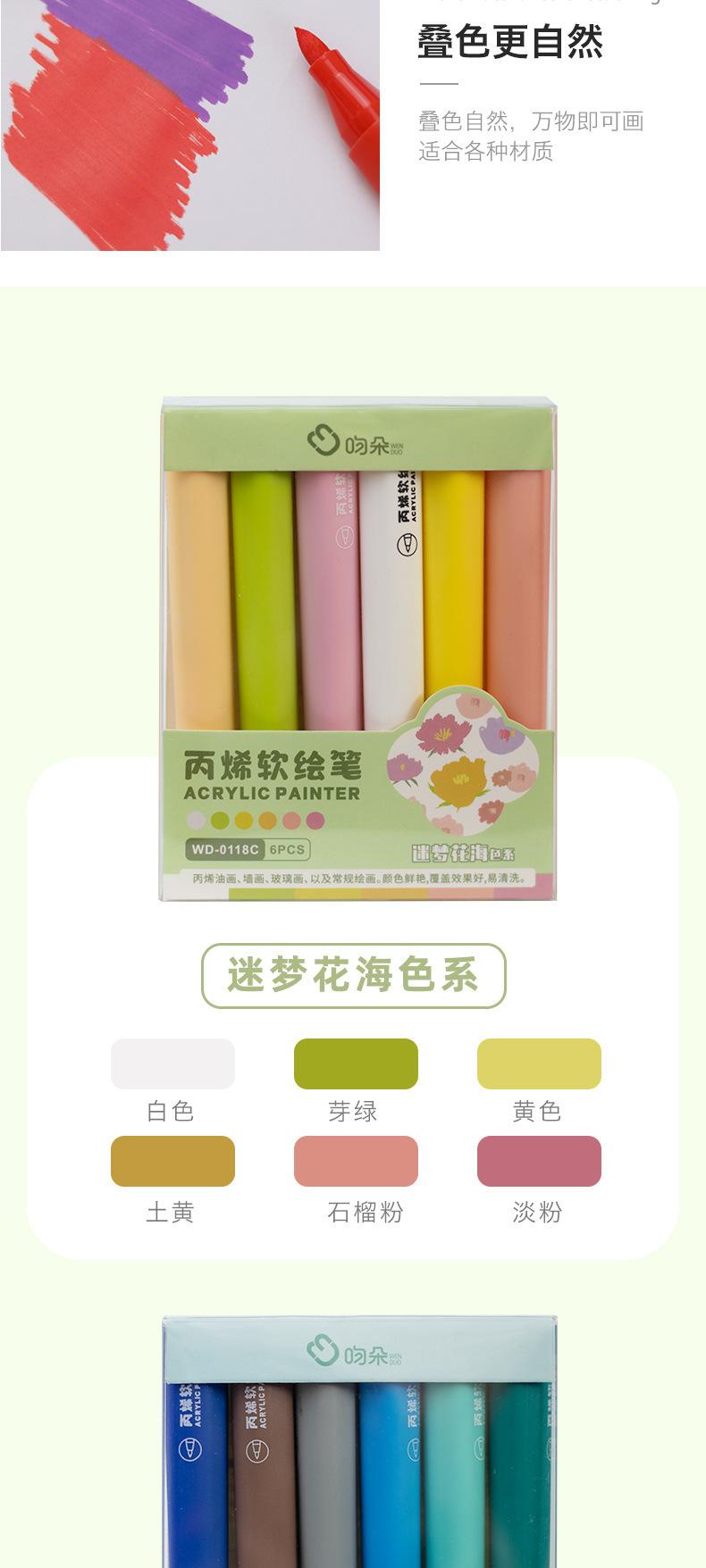 Juego de plumas acrílicas suaves Morandi para pintura, resaltadores para estudiantes, útiles escolares, gran capacidad, paquete de 6 marcadores de color