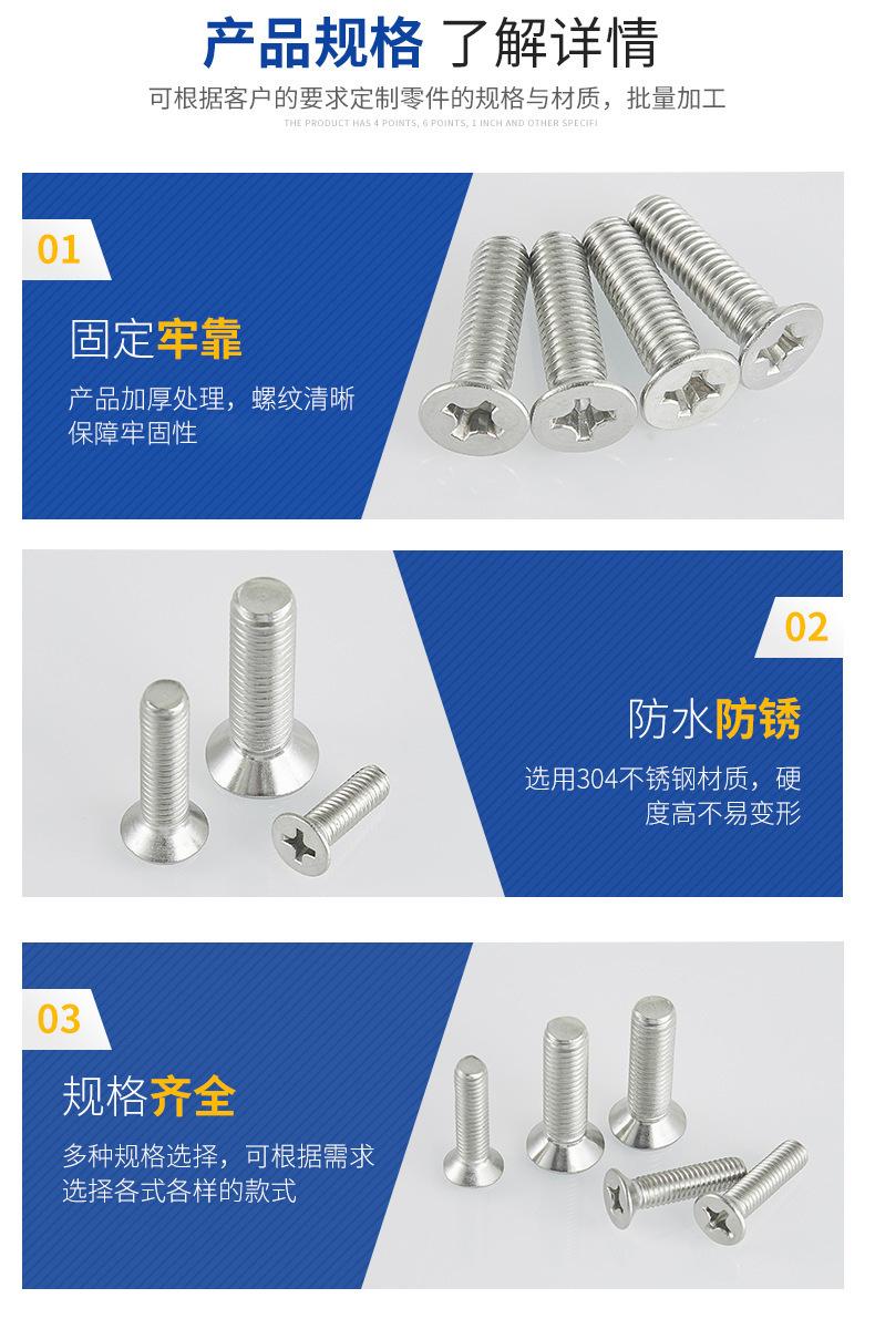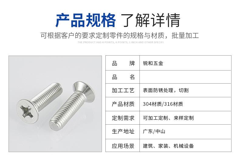 Tornillo de cabeza plana Phillips de acero inoxidable 304, tornillo de cabeza avellanada KM GB819, alambre para máquina pequeño M2M3M4M5M6M8M10