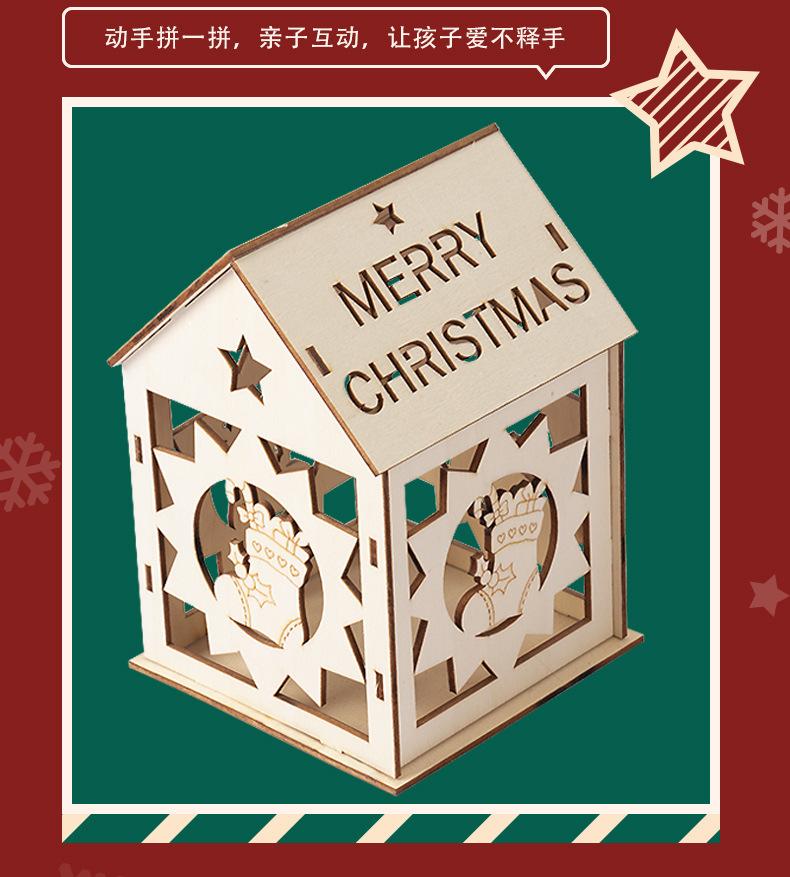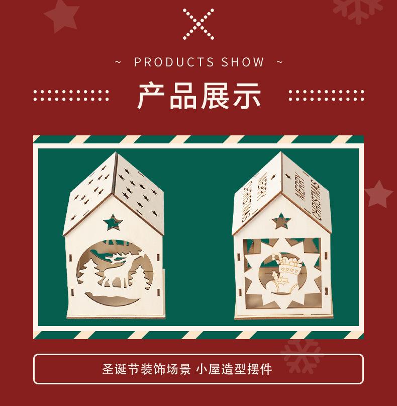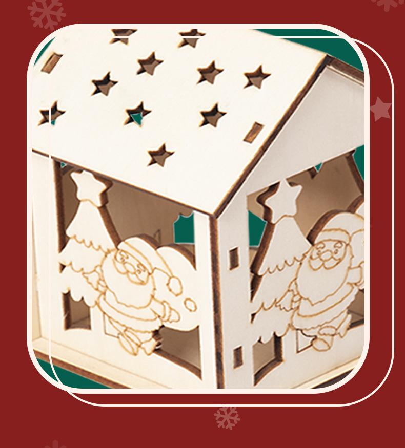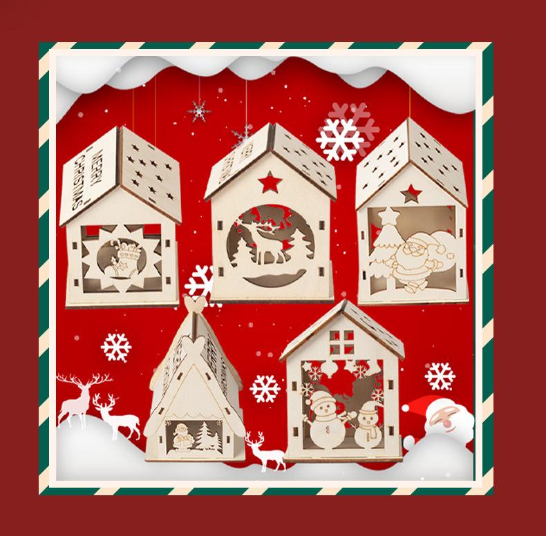 Nueva cabaña navideña DIY transfronteriza Nuevos adornos navideños huecos Decoraciones navideñas artesanías de madera