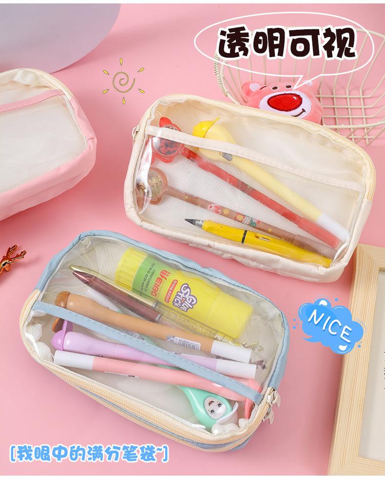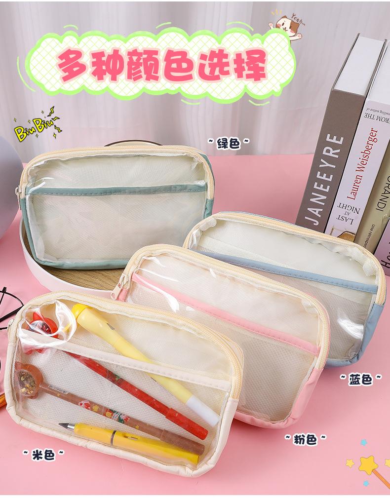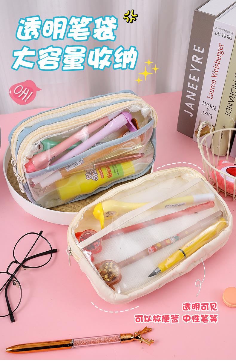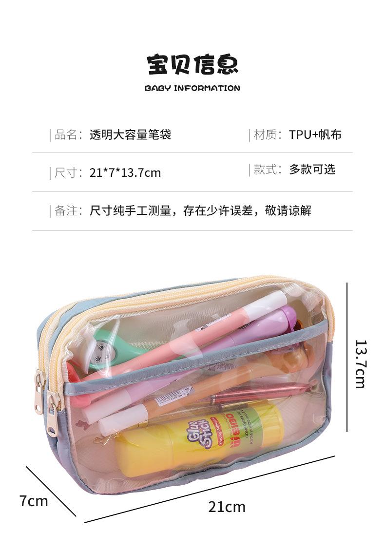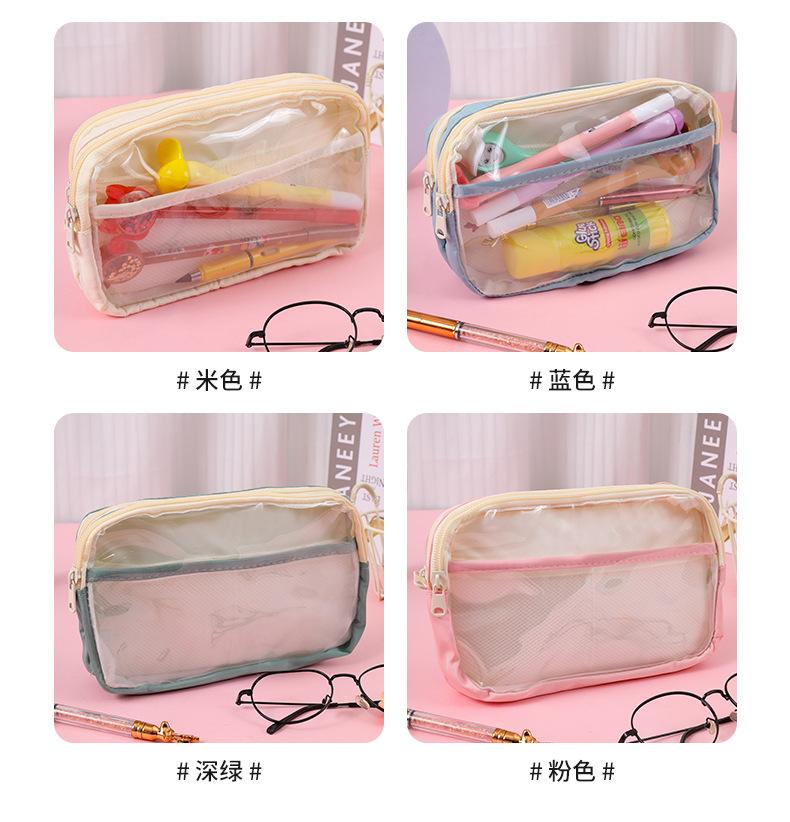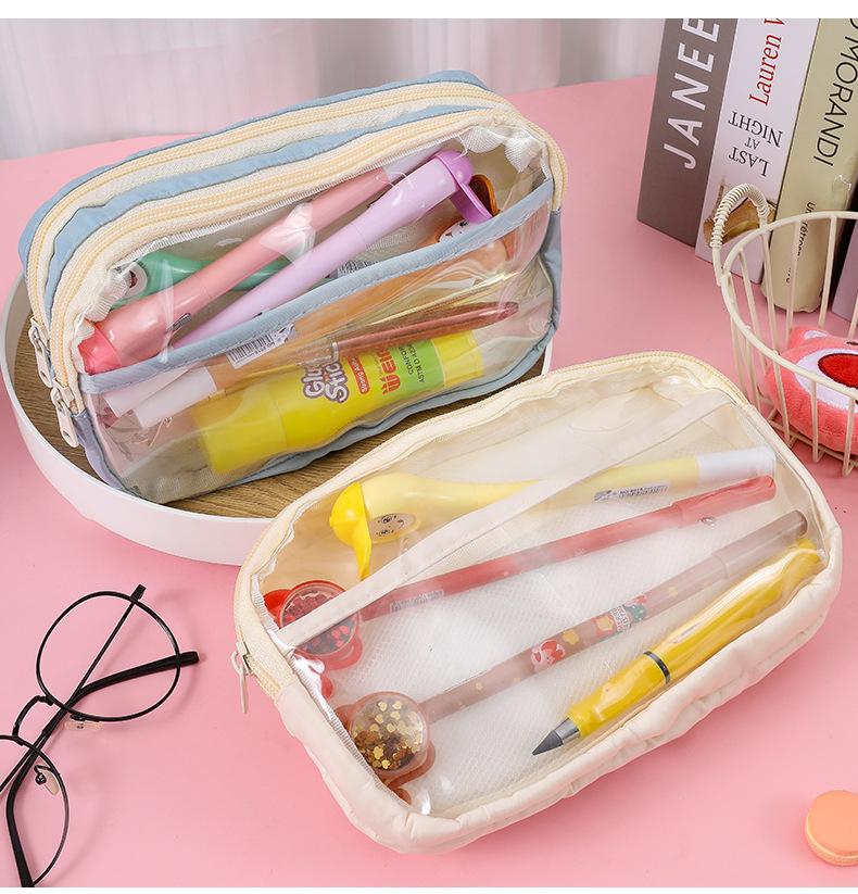 Estuche transparente de tres capas estilo coreano de gran capacidad, bolsa de almacenamiento de papelería de PVC para niñas, estudiantes de primaria, estuche para lápices, bolsa de almacenamiento