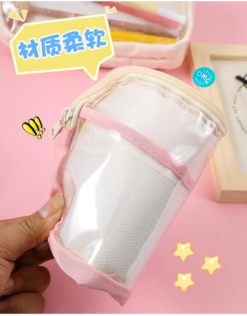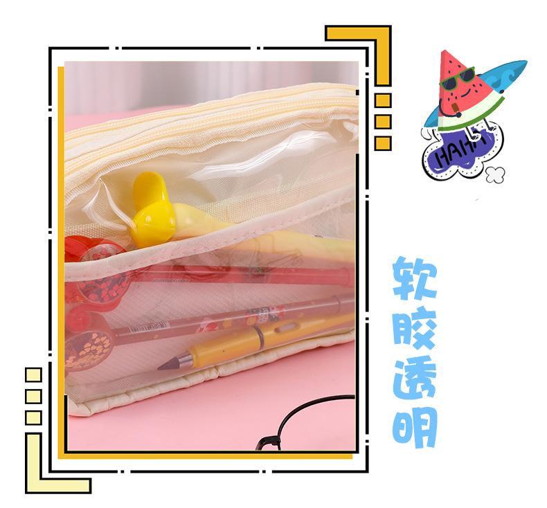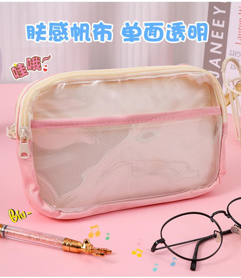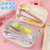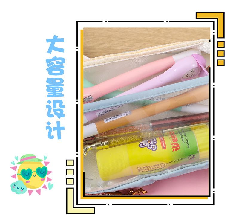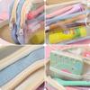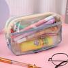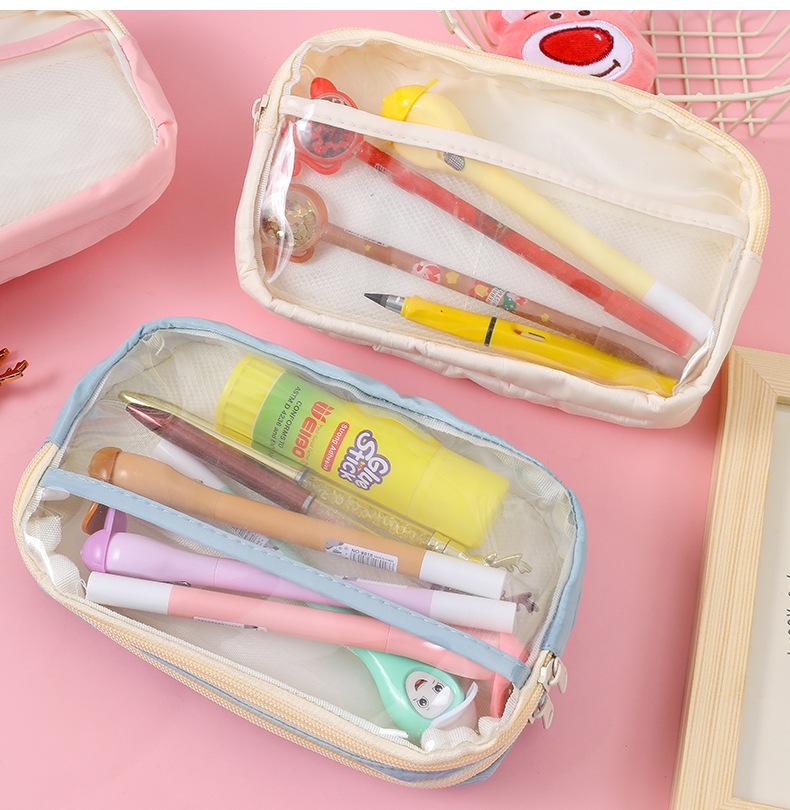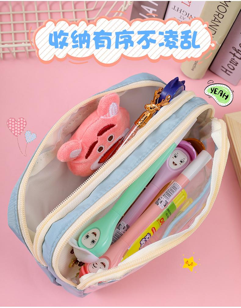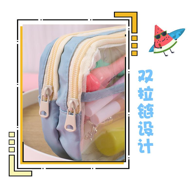 Estuche transparente de tres capas estilo coreano de gran capacidad, bolsa de almacenamiento de papelería de PVC para niñas, estudiantes de primaria, estuche para lápices, bolsa de almacenamiento