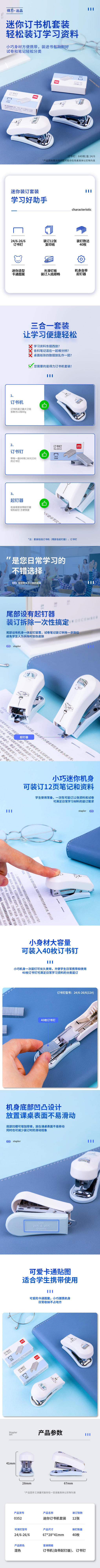 Grapadora Mini Deli 0352 Pequeña Set para Estudiantes Grapadora sin. 12 Grapas Grapadora Linda para Uso de Oficina