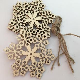 Venta directa de fábrica de artesanías de madera con copos de nieve blancos, serie navideña, astillas de madera, decoraciones para el hogar, estilo creativo |