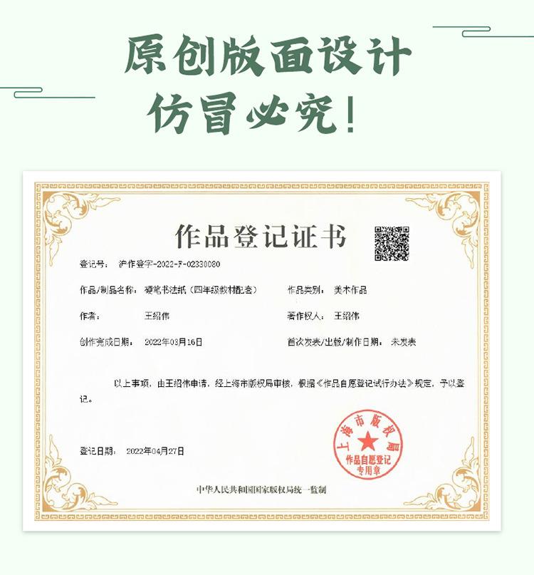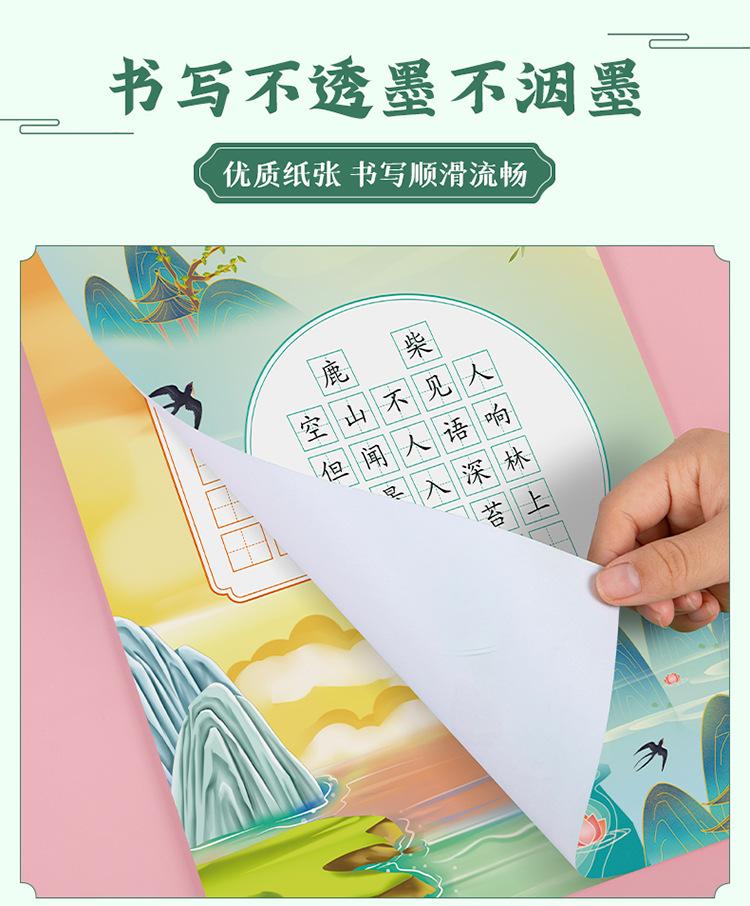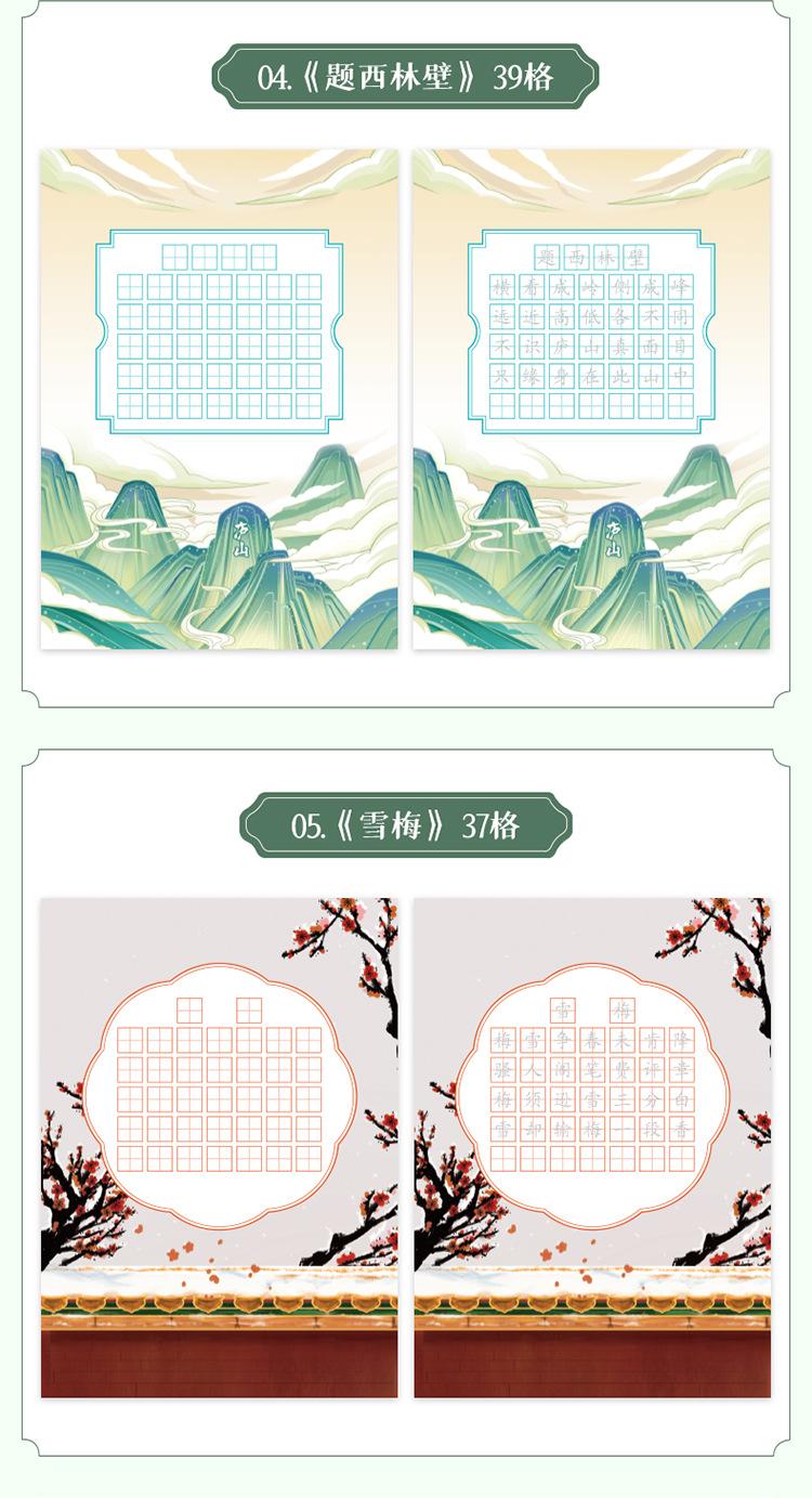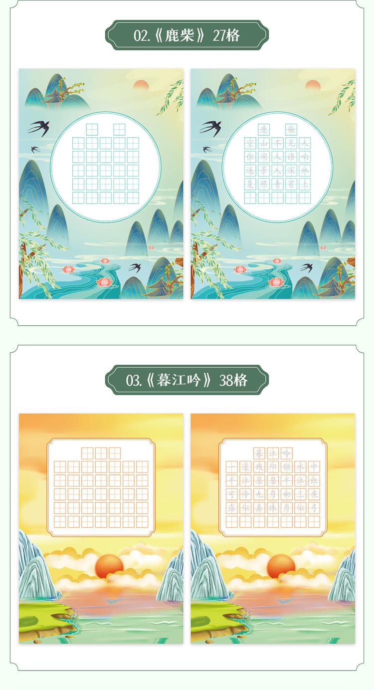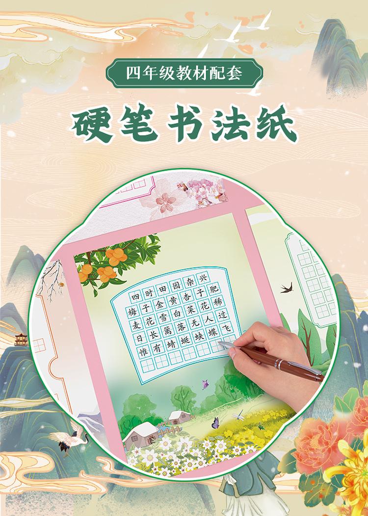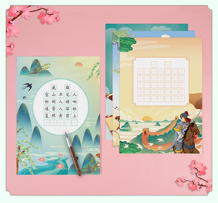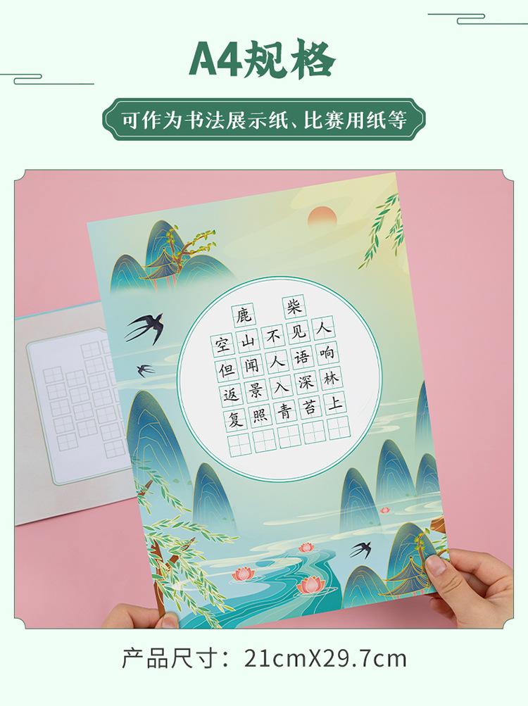 Concurso de trabajos de caligrafía con pluma dura de cuarto grado, tamaño A4, para estudiantes de primaria, papel de práctica, papel de caligrafía, papel de exhibición, materiales didácticos que apoyan la poesía antigua.