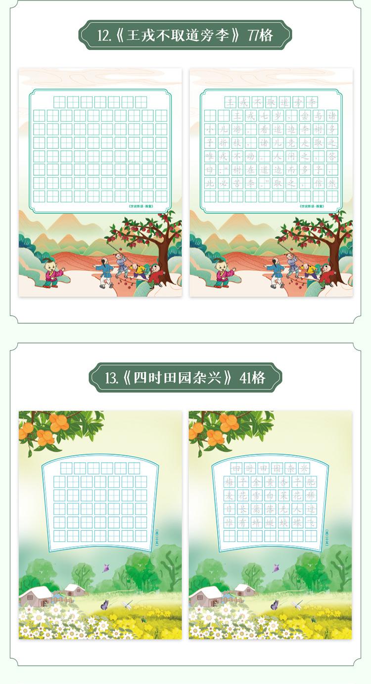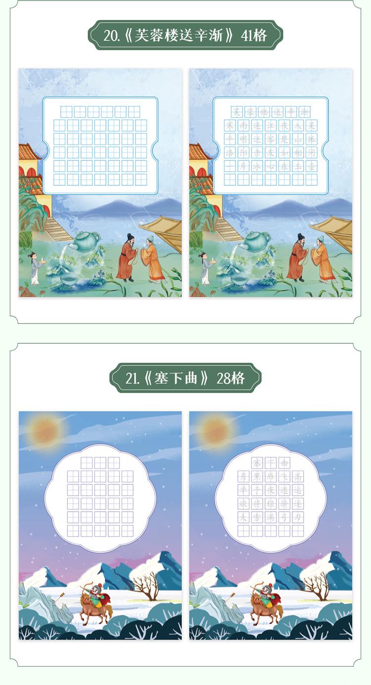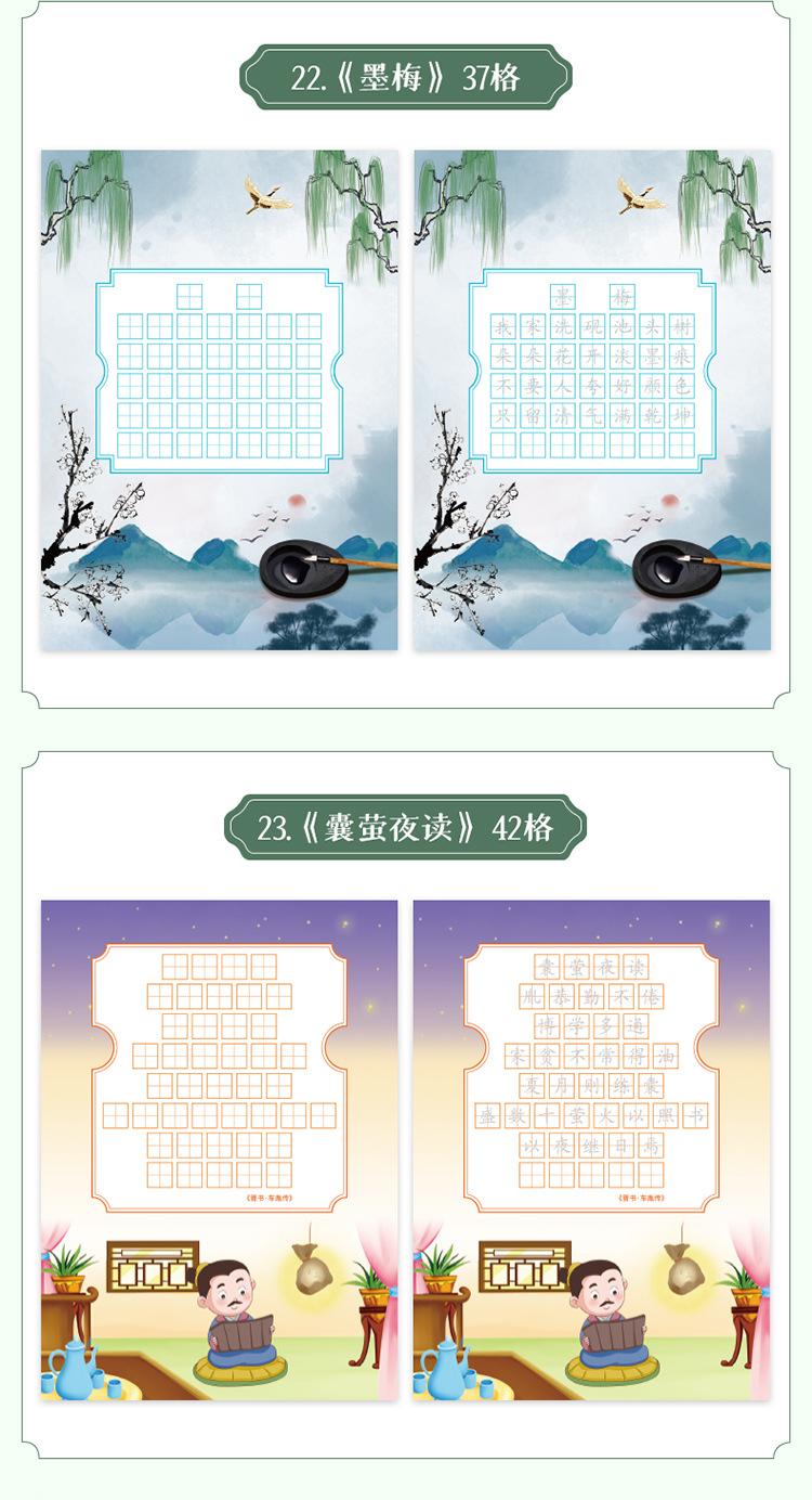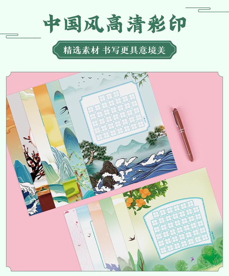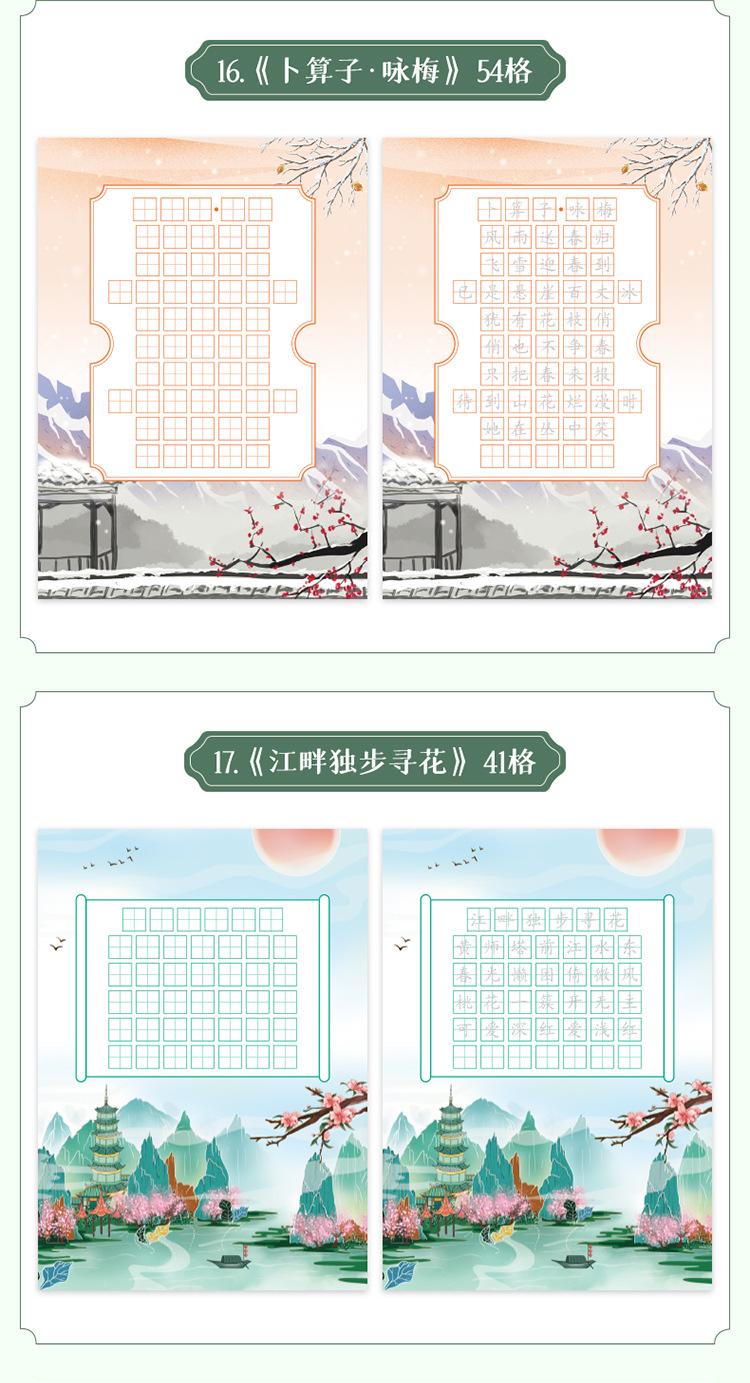Concurso de trabajos de caligrafía con pluma dura de cuarto grado, tamaño A4, para estudiantes de primaria, papel de práctica, papel de caligrafía, papel de exhibición, materiales didácticos que apoyan la poesía antigua.