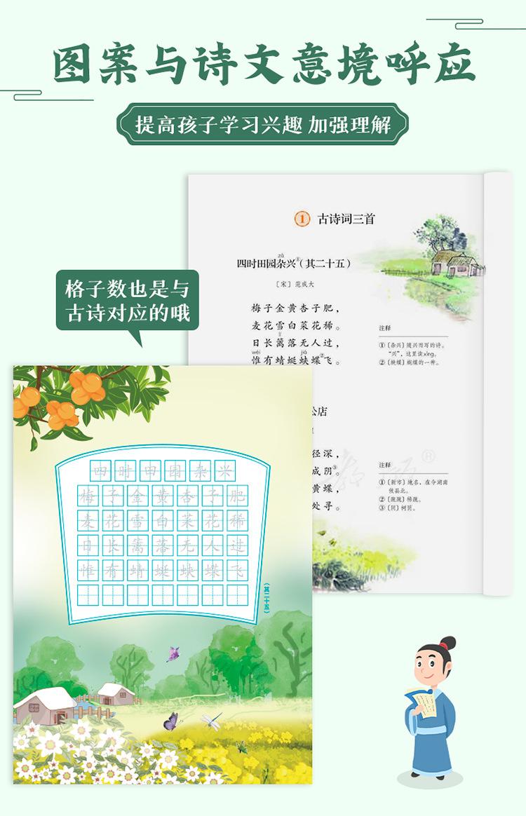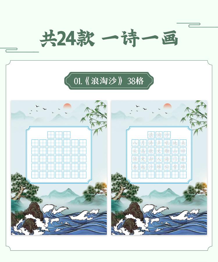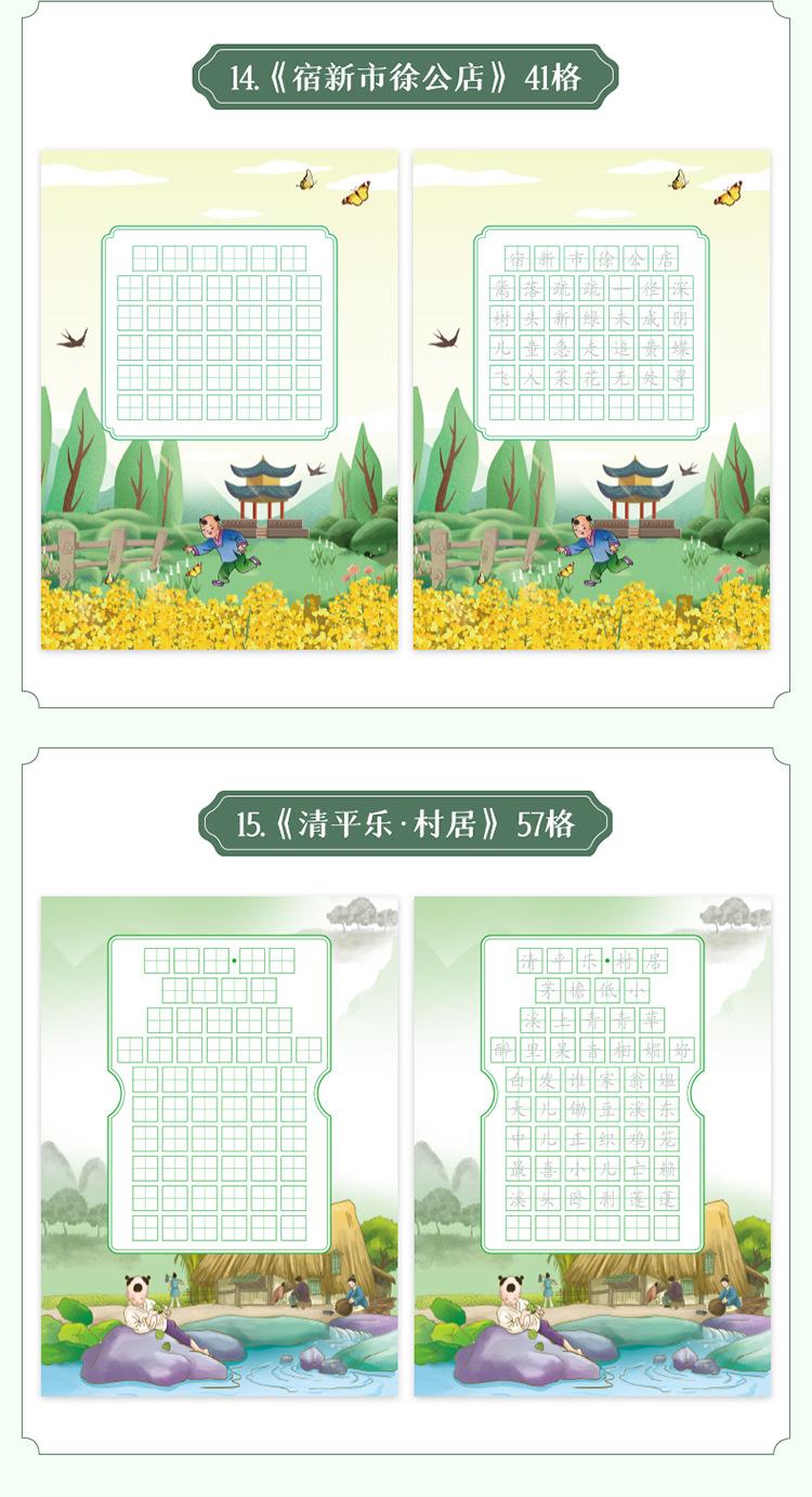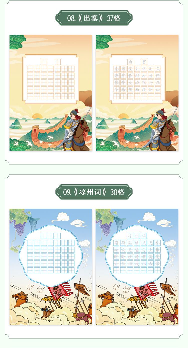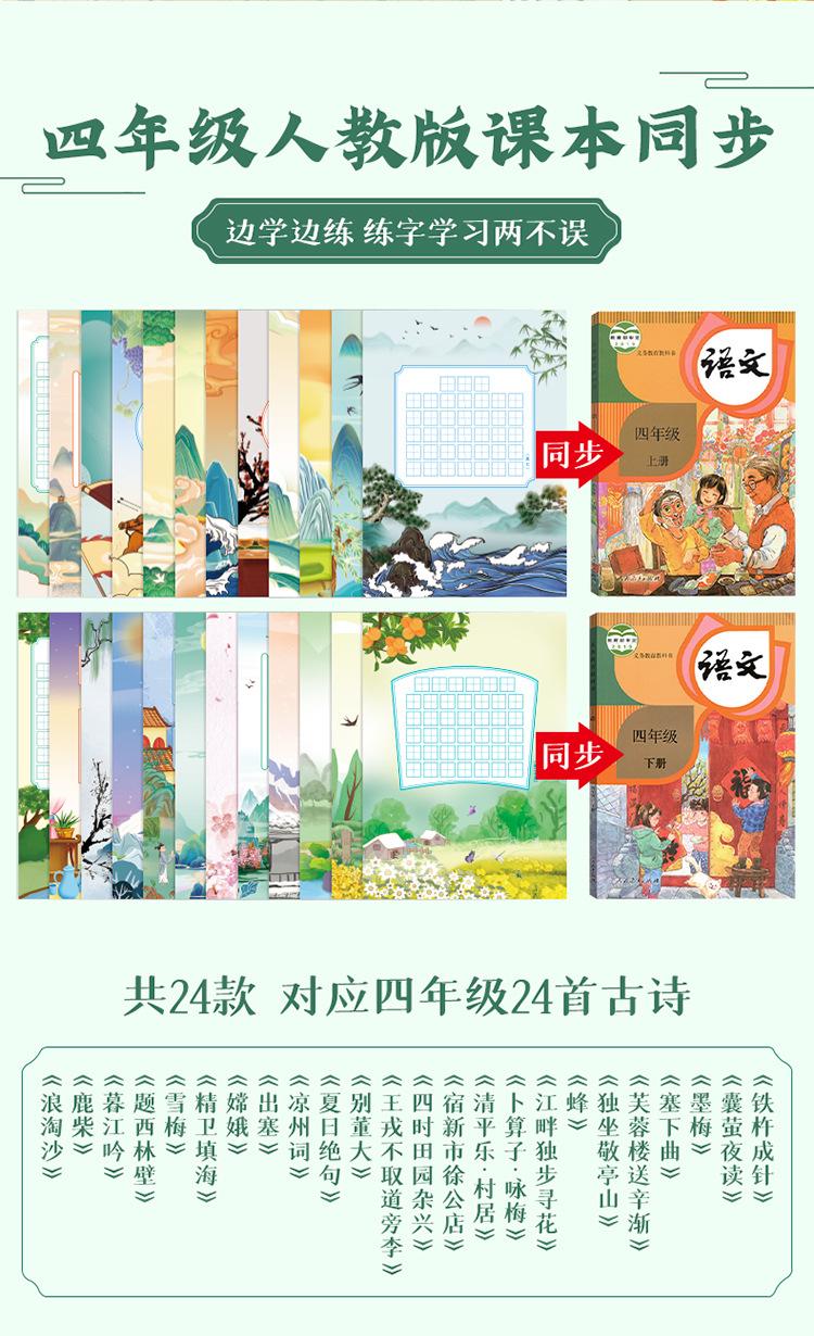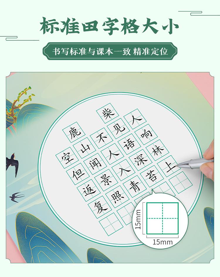 Concurso de trabajos de caligrafía con pluma dura de cuarto grado, tamaño A4, para estudiantes de primaria, papel de práctica, papel de caligrafía, papel de exhibición, materiales didácticos que apoyan la poesía antigua.