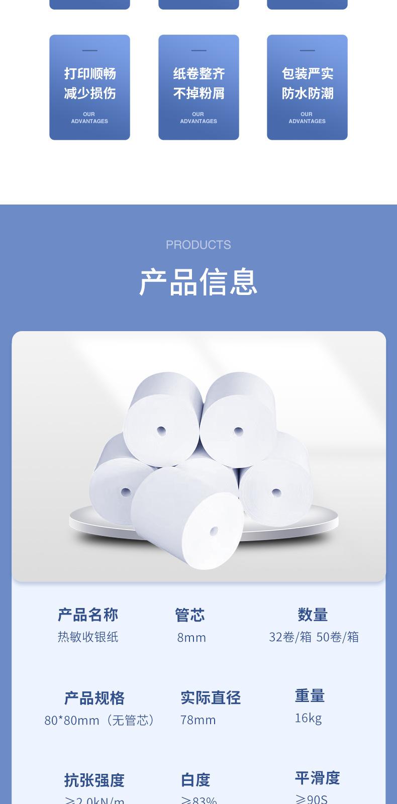 Papel de impresión térmica sin tubo, papel para caja registradora, papel térmico 80x80, rollo de papel para impresora de cocina, papel para caja registradora de 80 x 80 mm