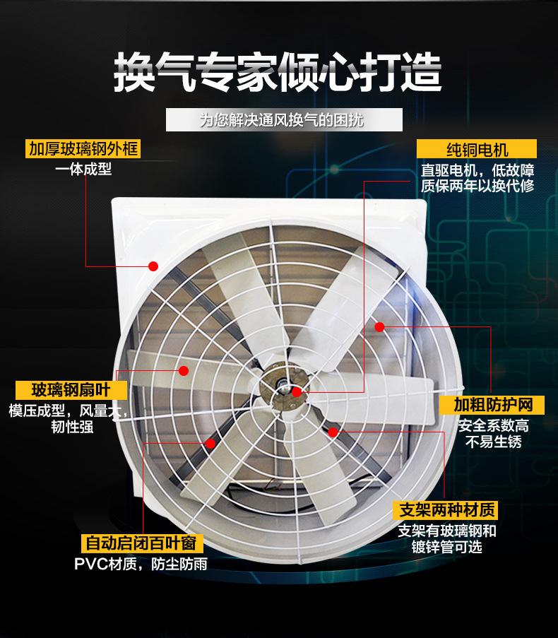Ventilador de presión negativa de plástico reforzado con fibra de vidrio de conexión directa 650, extractor industrial, extractor, ventilador anticorrosión para fábrica de cría