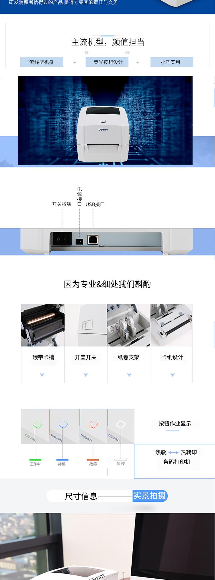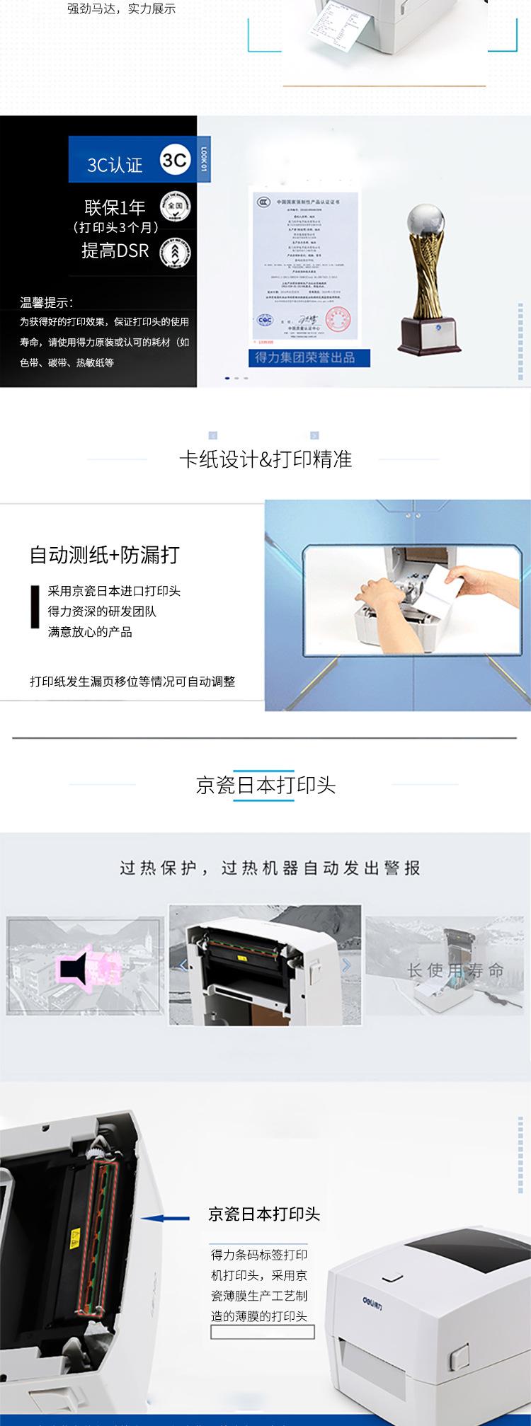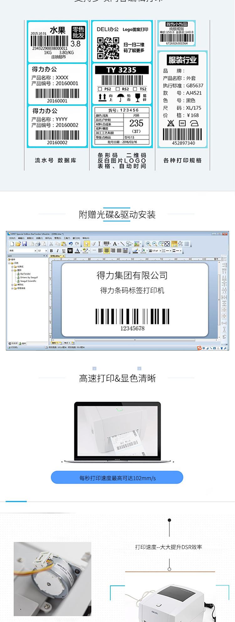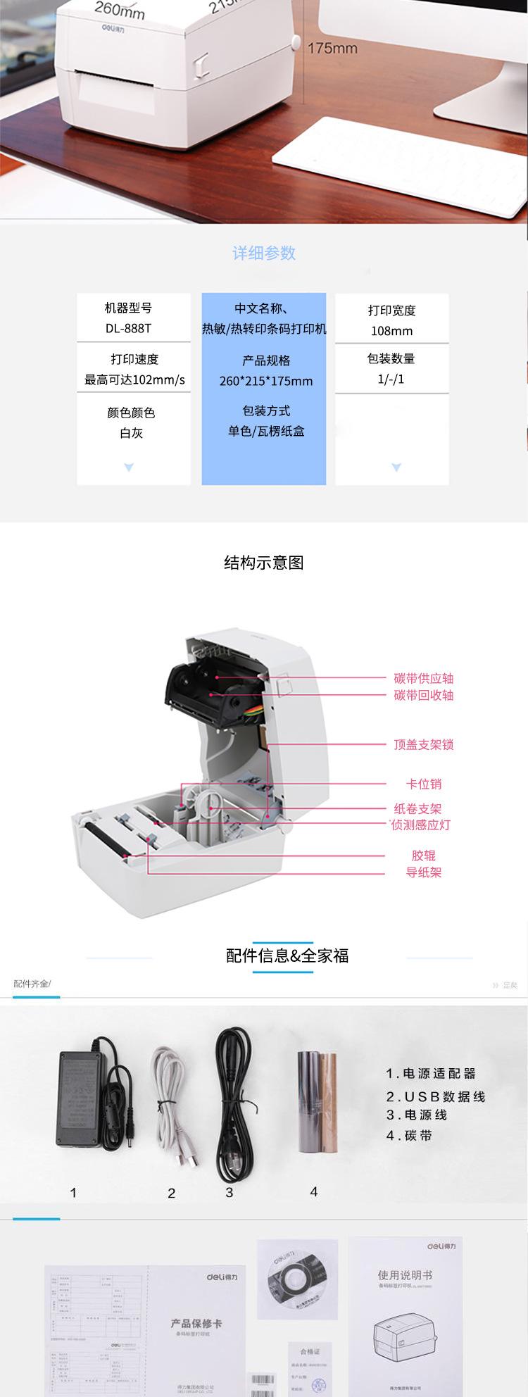 Impresora de etiquetas de código de barras Deli DL-888T, impresora de etiquetas térmicas por transferencia térmica, impresora de pegatinas