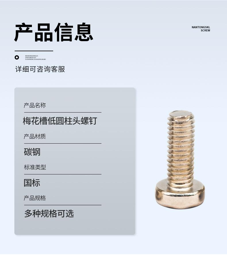 Tornillo de cabeza cilíndrica baja con ranura de ciruela, acero al carbono, niquelado negro, tornillo electrónico pequeño GB/T2671.1, estándar nacional de ciruela