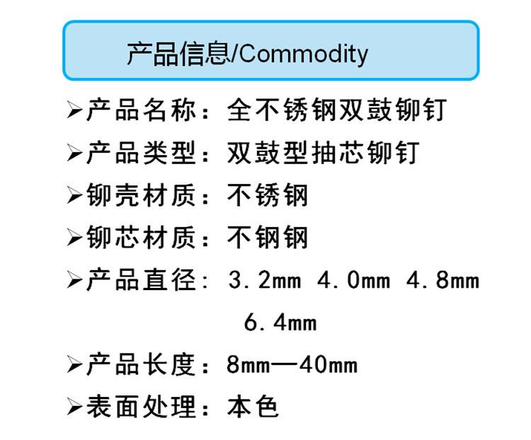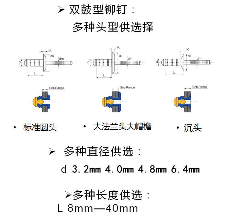 Remaches de Doble Tambor de Acero Inoxidable Goode 304, Remaches de Múltiple Doble Hilo 316 de Alta Resistencia, Remaches Estructurales y Fabricante de Remaches