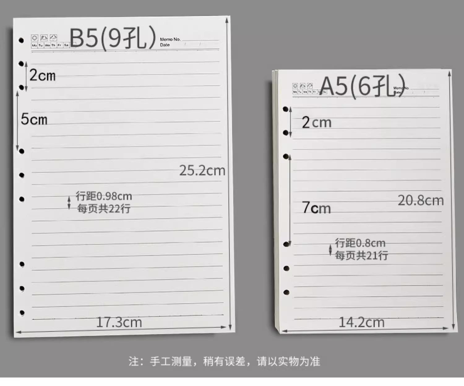 A5 horizontal line (1 80g100), B5 horizontal line (1 80g100), A5 horizontal line (5 80g500 sheets)