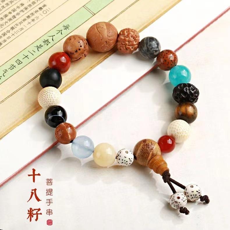 Pulsera de 18 cuentas Pulsera de Bodhi Pulsera de mano Cuentas de rosario Estrella Luna Pulsera de Bodhi