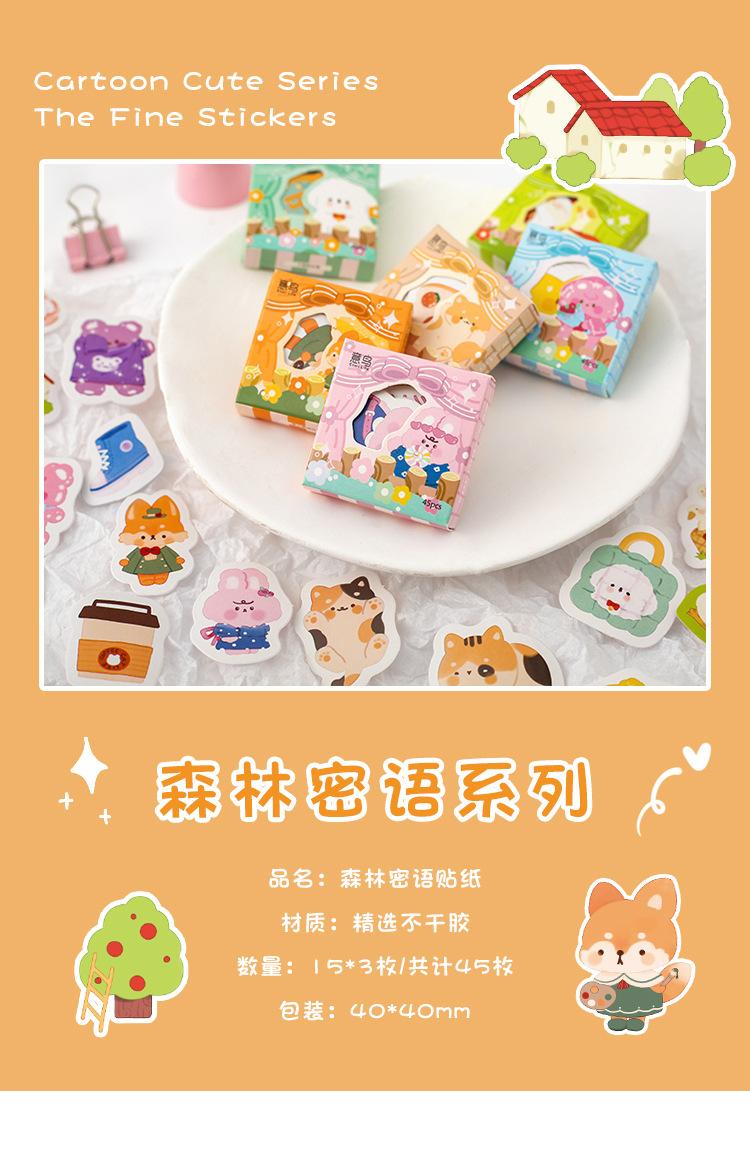 Pegatinas en forma de pájaro italiano en caja, serie de lenguaje secreto del bosque, dibujos animados, lindas cuentas de mano, pegatinas decorativas DIY 45 6