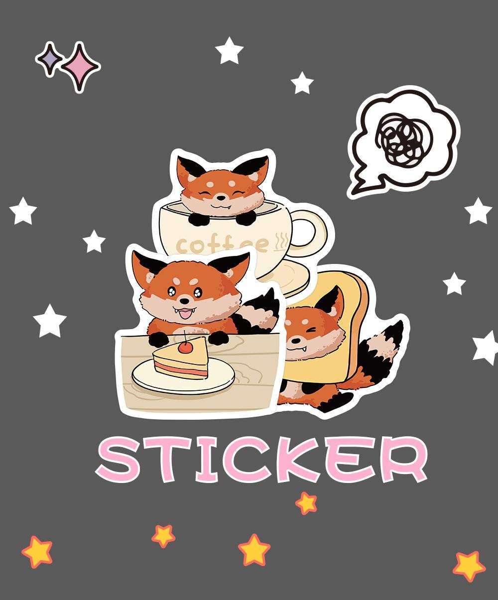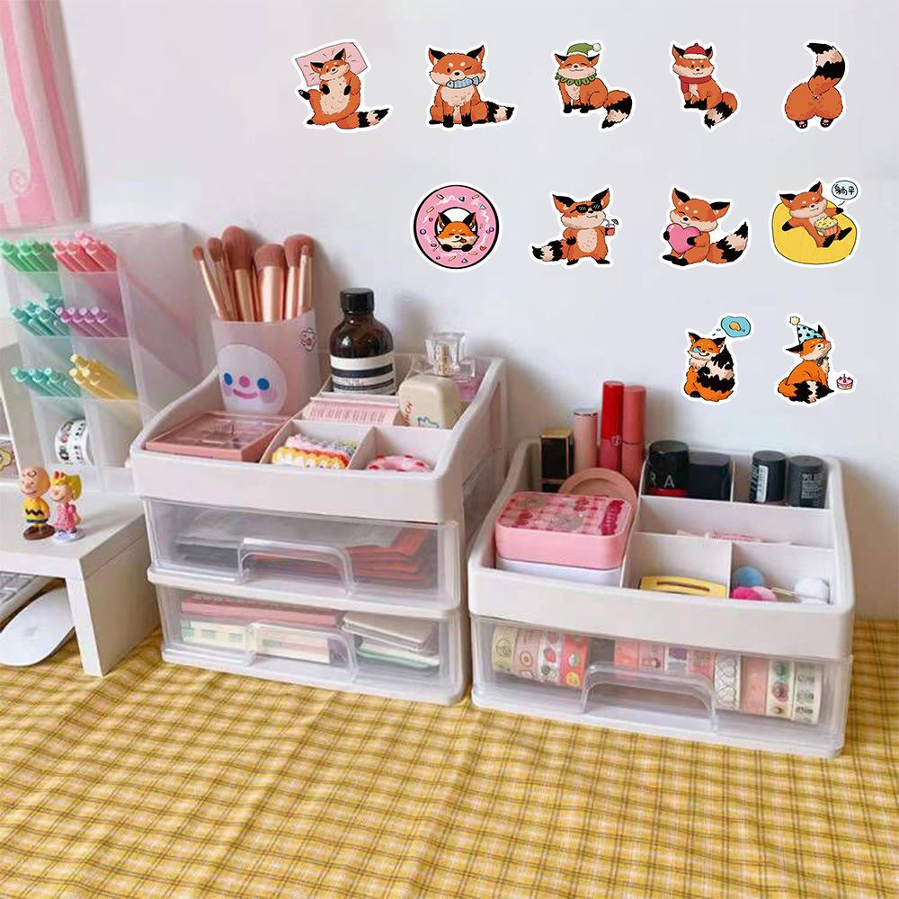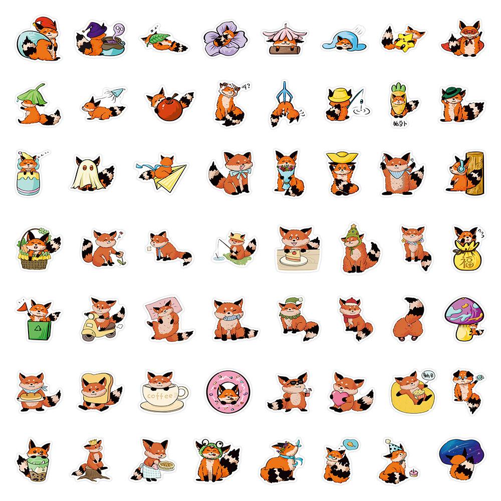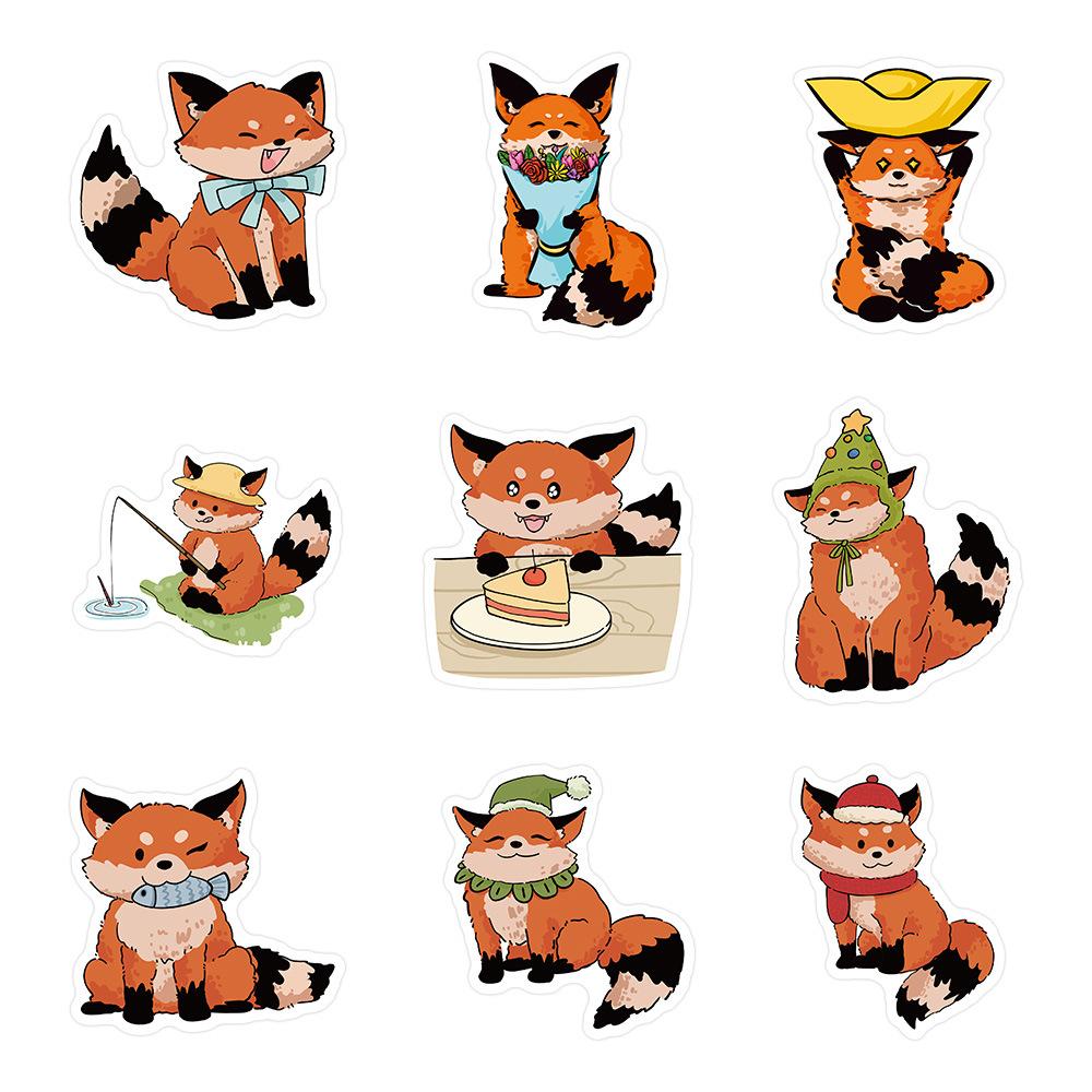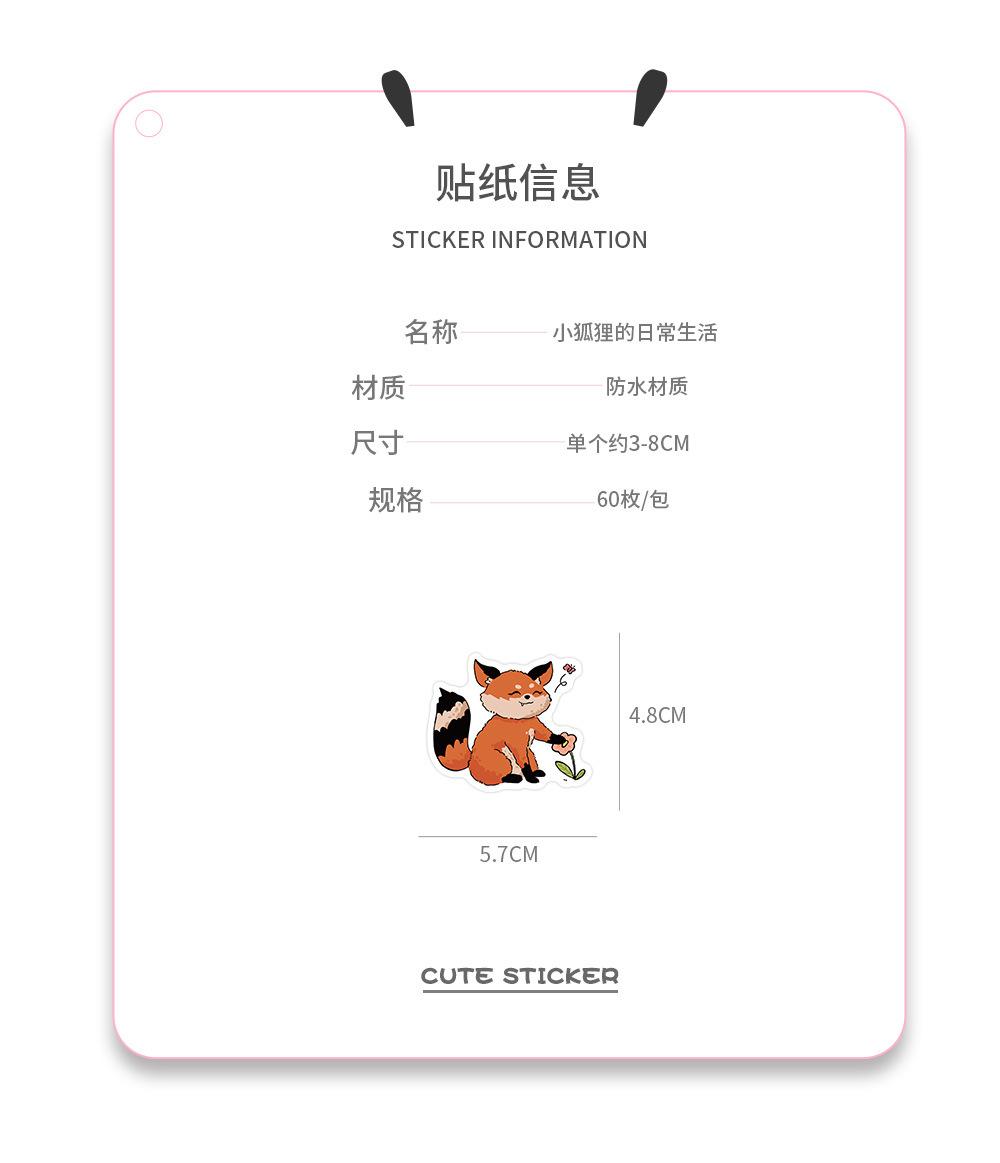 60 pegatinas de zorros pequeños para la vida cotidiana, lindas pegatinas de dibujos animados para libros de cuentas, tazas, decoración de escritorio, pegatinas impermeables
