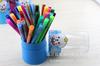 En cada pequeña caja interior, los portalápices azules y rojos están combinados de manera uniforme para facilitar su venta y distribución.
