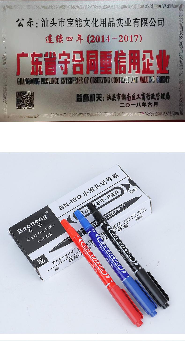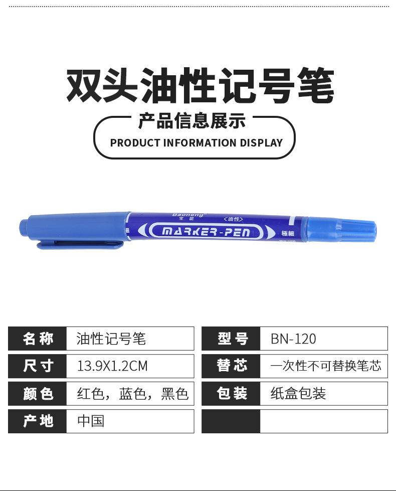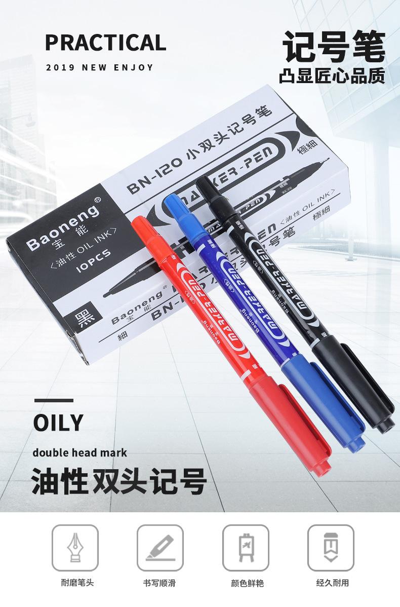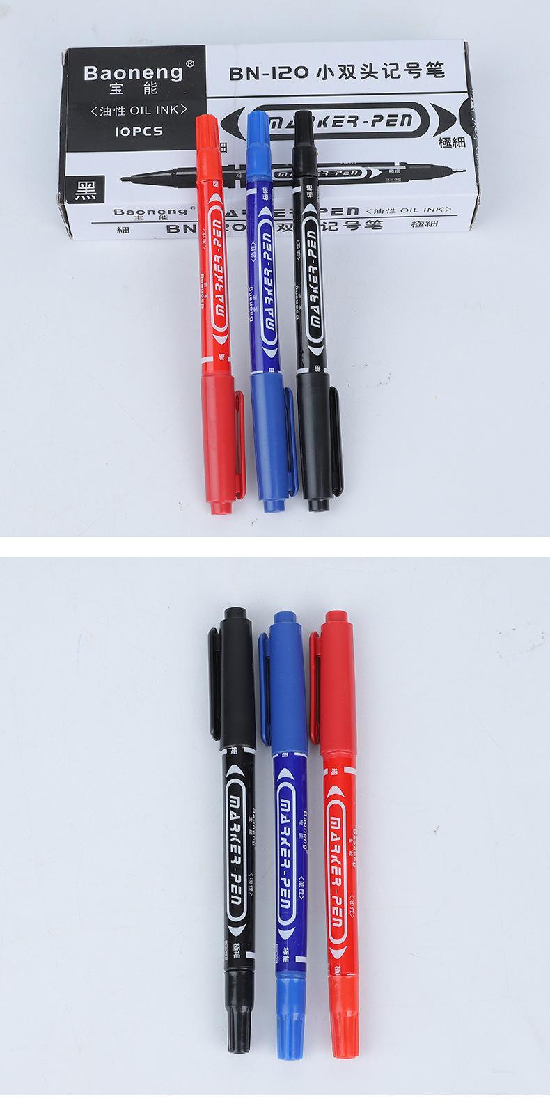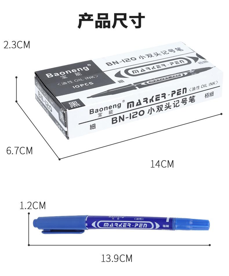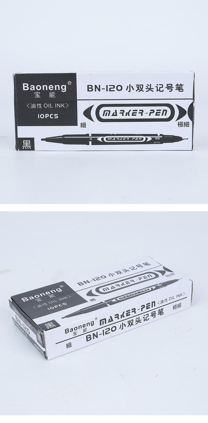 Baoneng Negro Aceitoso Marcador Pequeño de Doble Punta Pequeño Impermeable No Se Desvanece Pintura Pluma de Gancho Venta al por Mayor