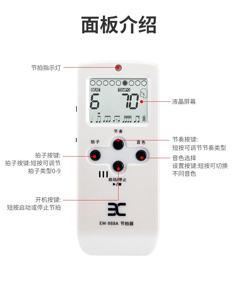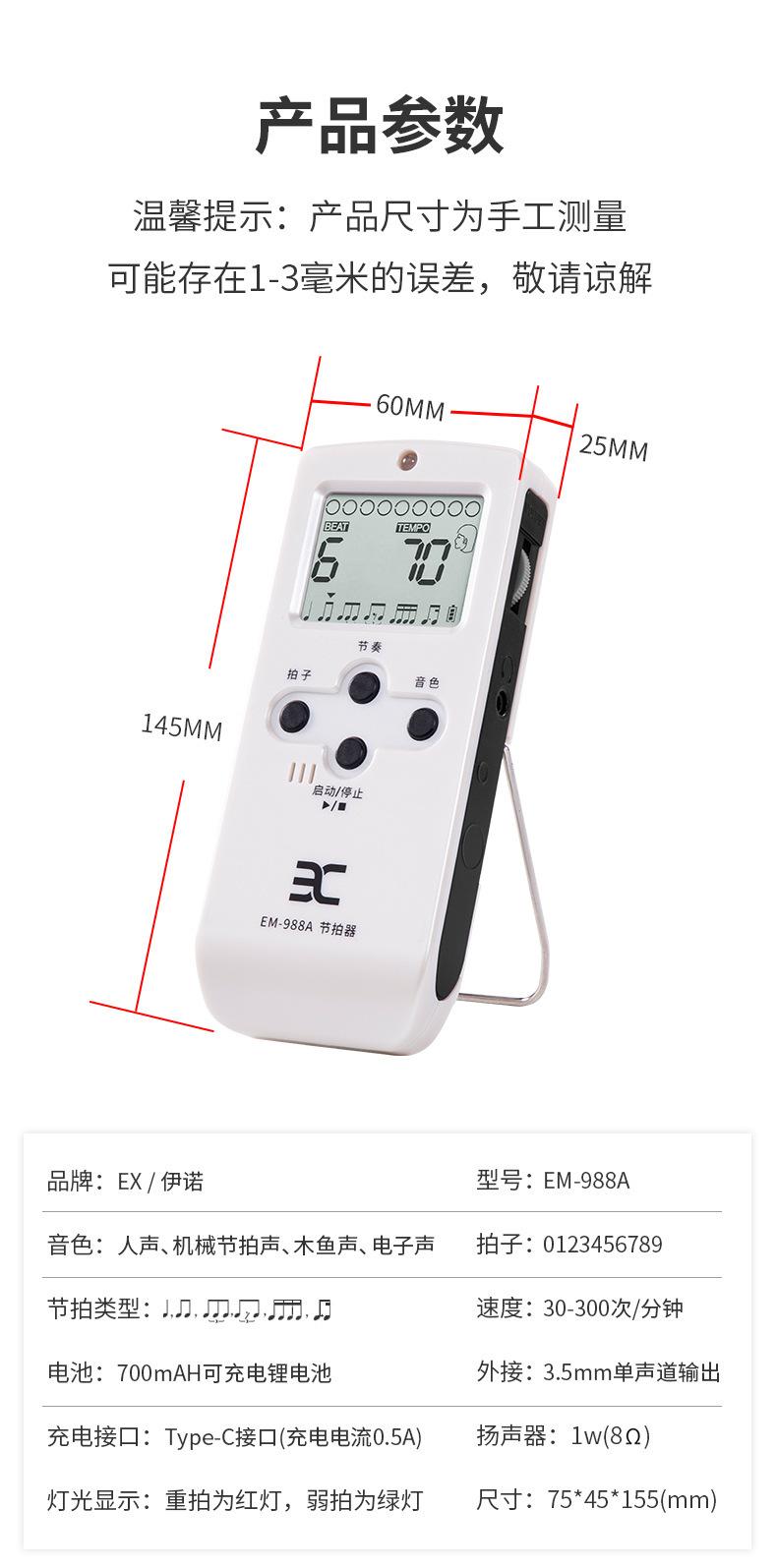 Metrónomo vocal electrónico Eno EM-988A para piano, guitarra, batería, guzheng, violín, universal, recargable