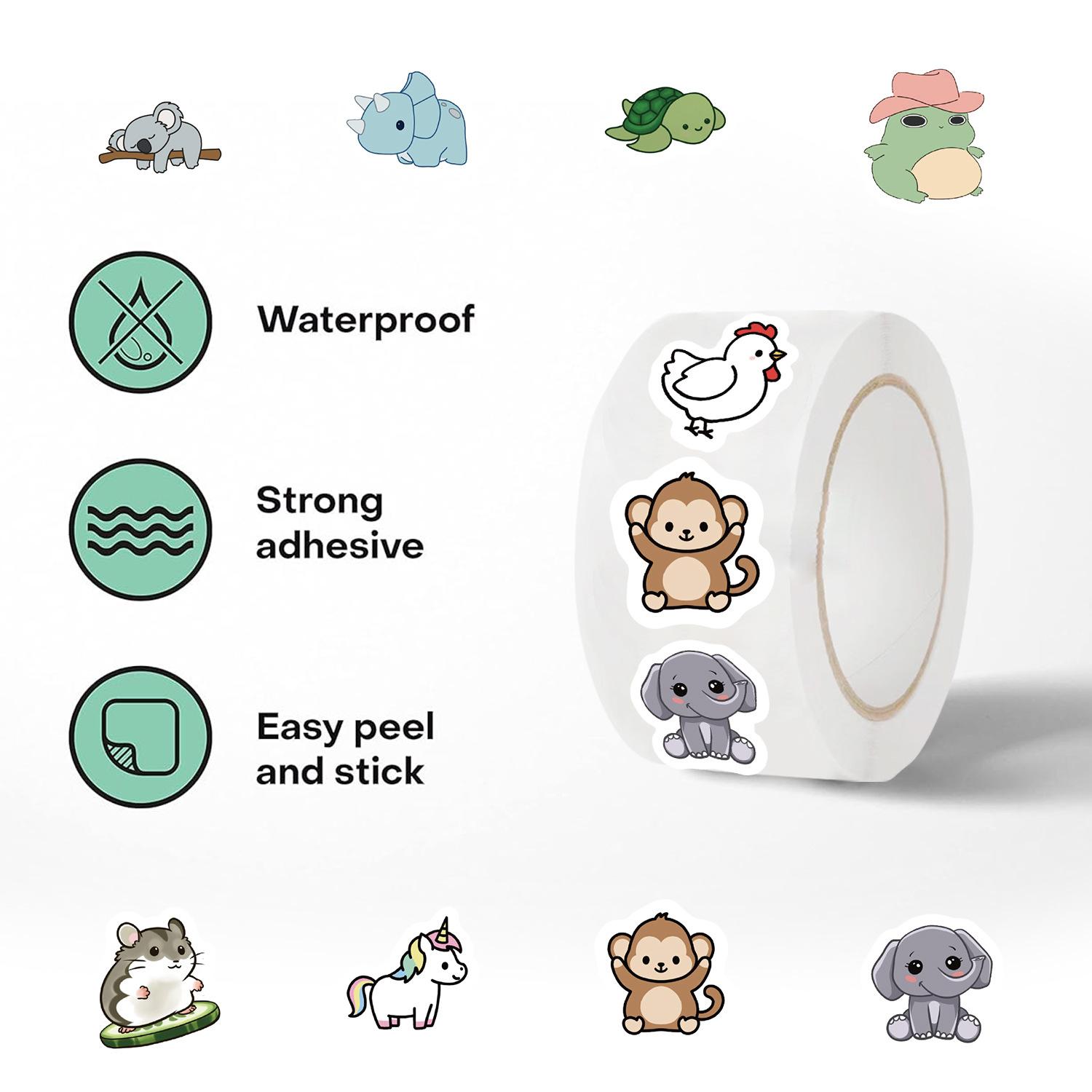 Rollo de 500 hojas de cinta adhesiva adhesiva para sobres, con dibujos de animales, para sellar sobres decorativos.