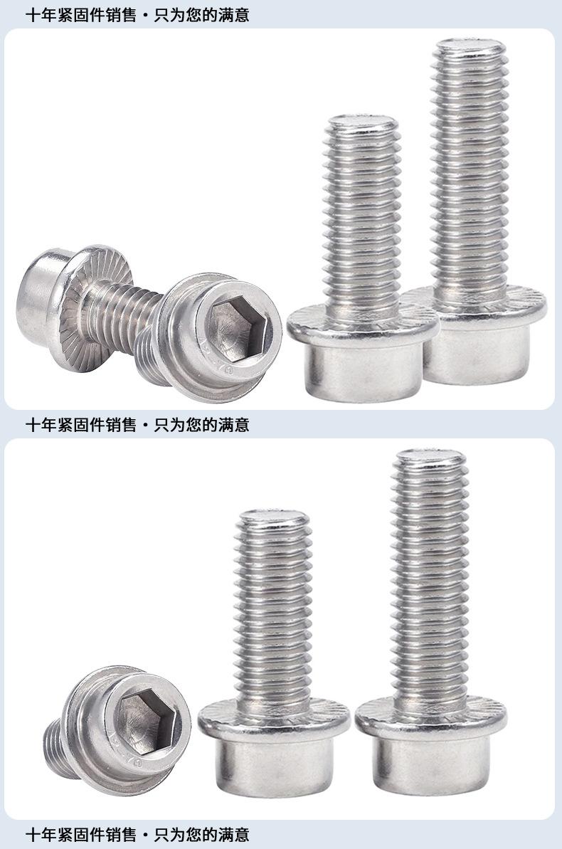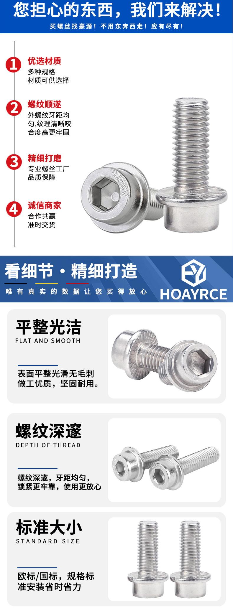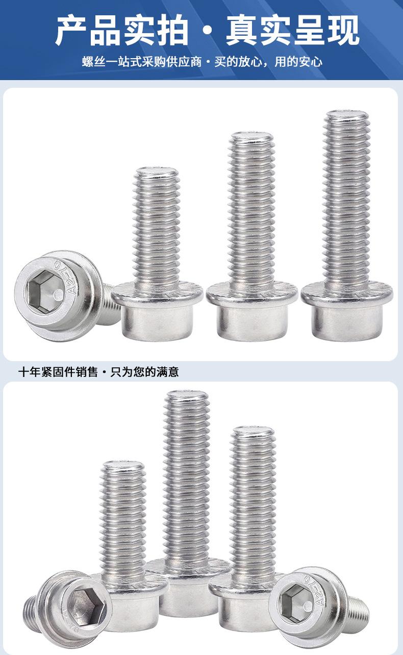 Tornillo de cabeza cilíndrica hexagonal con brida de acero inoxidable 304, con almohadilla y tornillo meso M4/M5/M6/M8