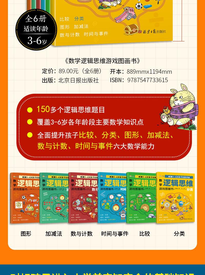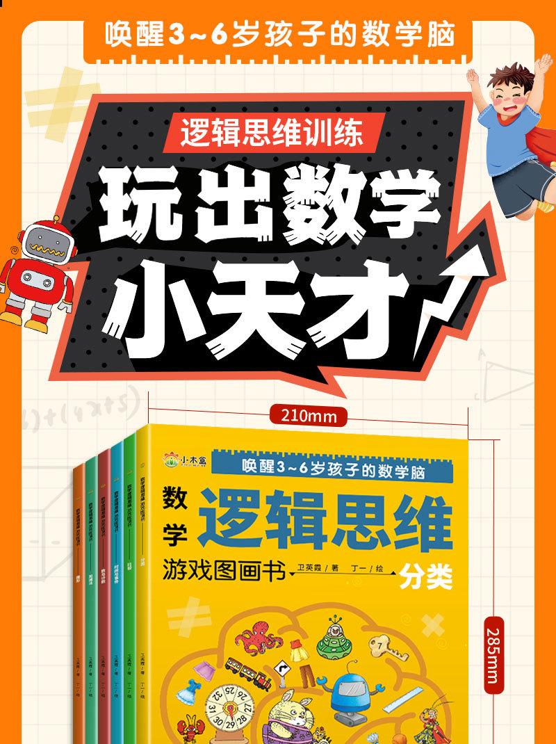 Libro ilustrado de juego de pensamiento lógico matemático, conjunto completo de 6 volúmenes de iluminación matemática para niños de 3 a 6 años, rompecabezas para enseñanza temprana