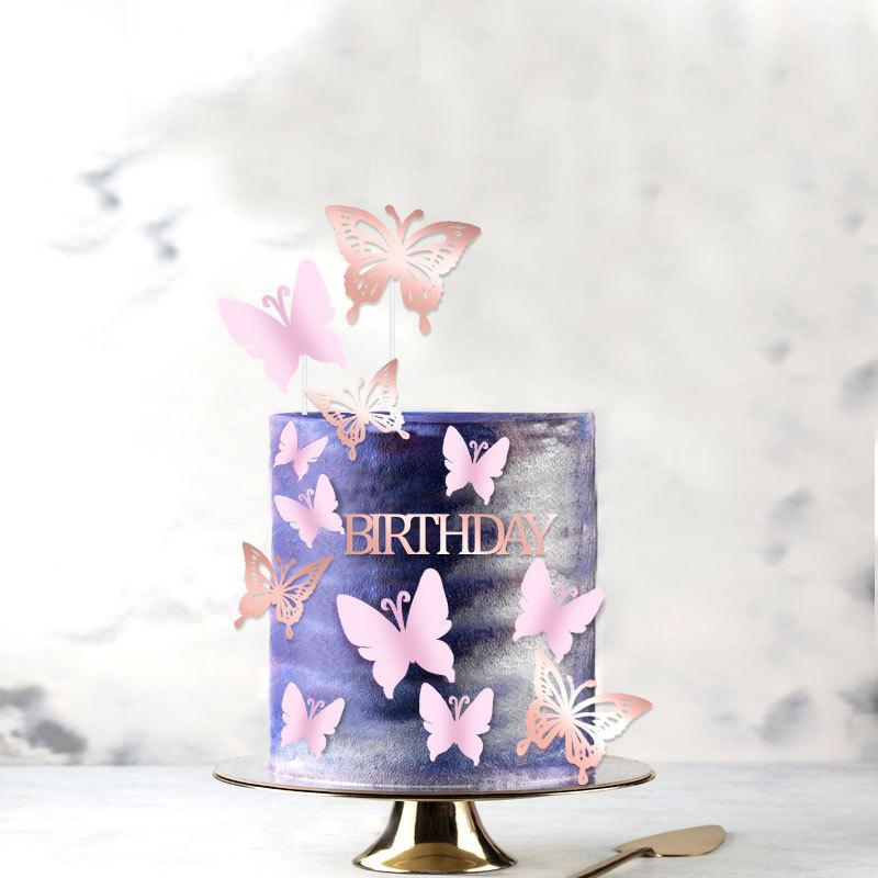Nuevo juego de complementos para tartas de bienvenida para bebés, adornos de mariposas tridimensionales, suministros para fiestas, tarjetas para tartas de cumpleaños, venta al por mayor