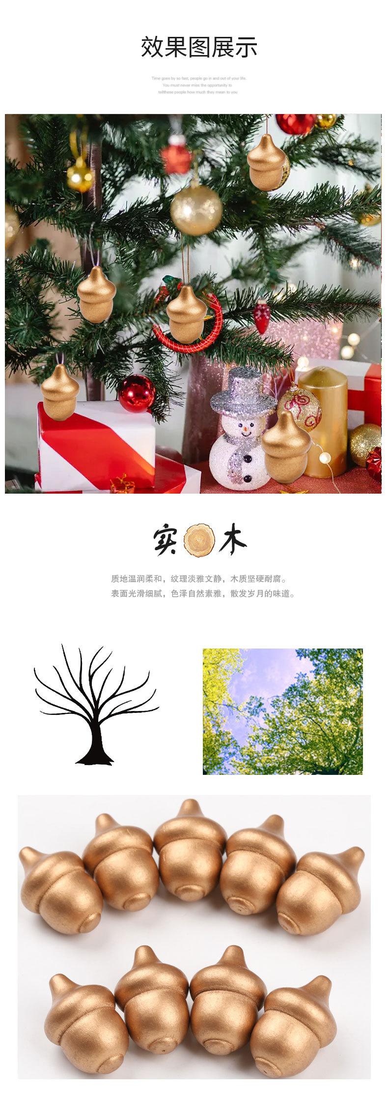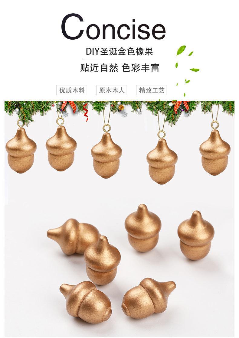 Productos de madera DIY transfronterizos, adornos navideños para el hogar, colgante creativo para árbol de Navidad, accesorios de bellota de madera dorada