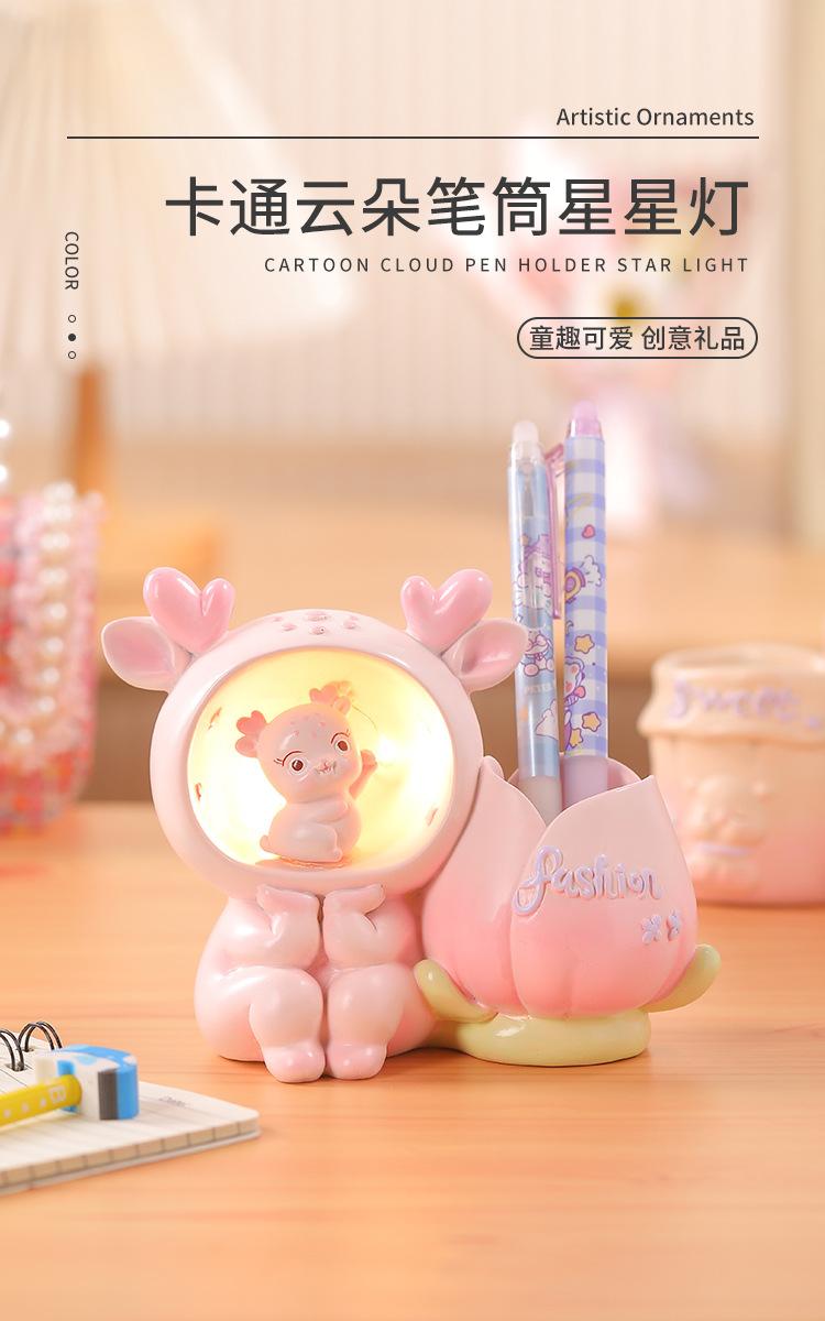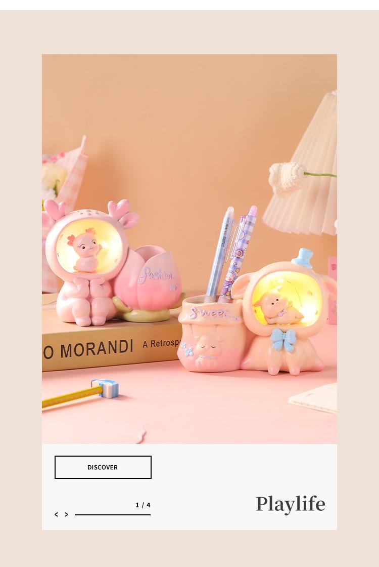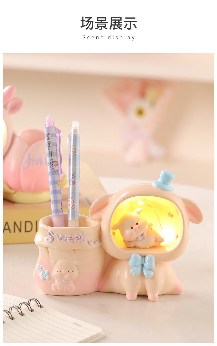 Tulip pen holder night light-pink, Cute pig pen holder night light-pink, Flower bear night light pen holder pu...