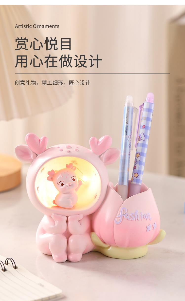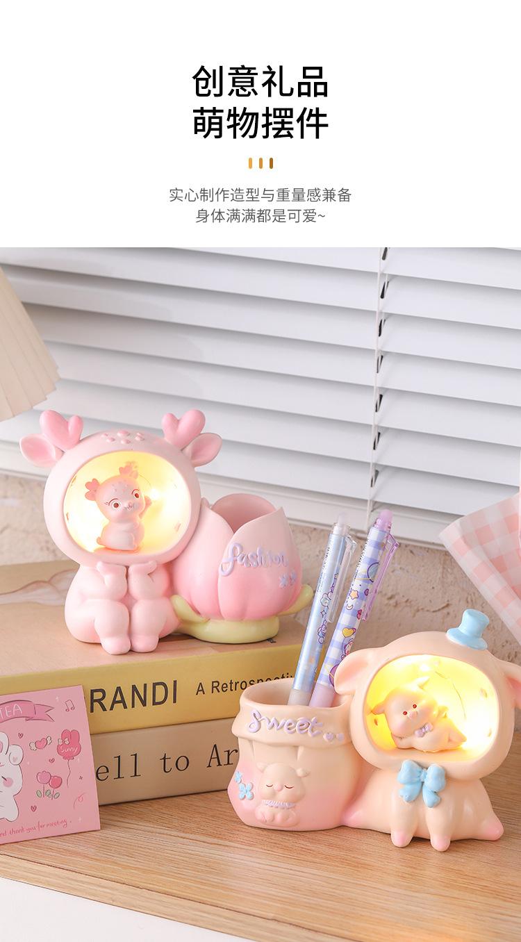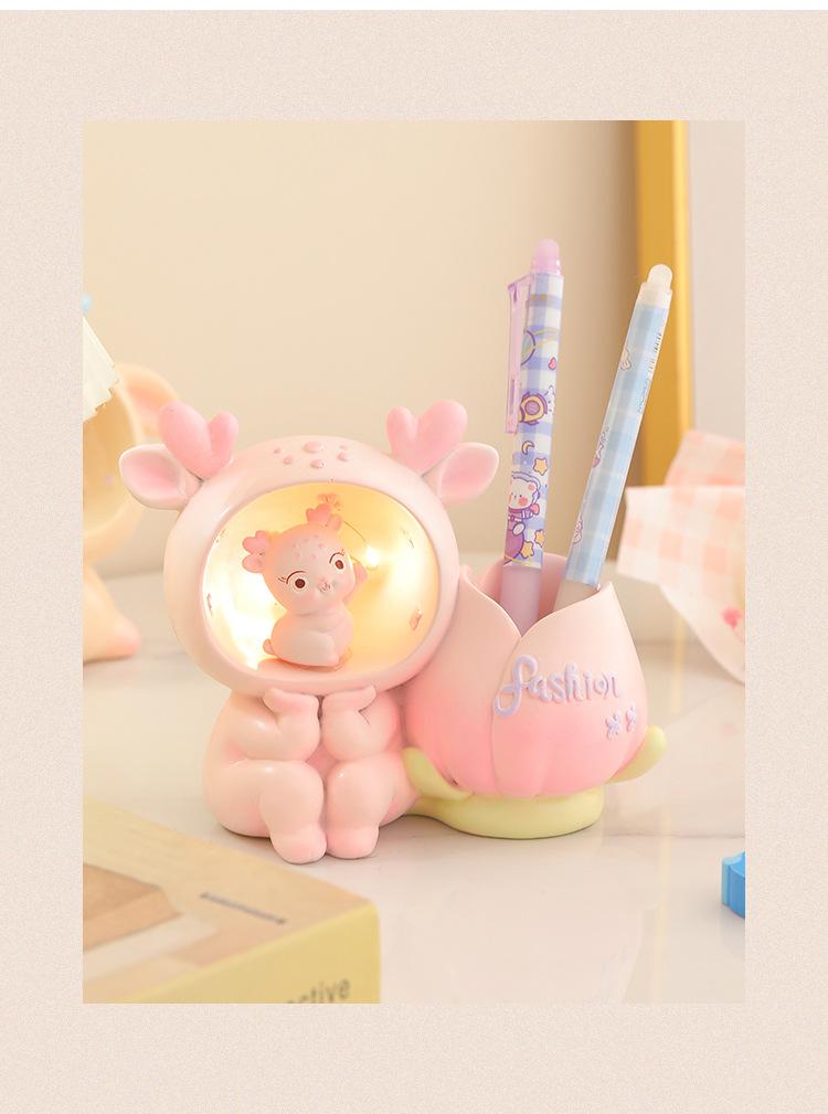 Lindo portalápices de ciervo luz nocturna multifuncional decoración para dormitorio infantil almacenamiento creativo decoración de escritorio regalo de vacaciones